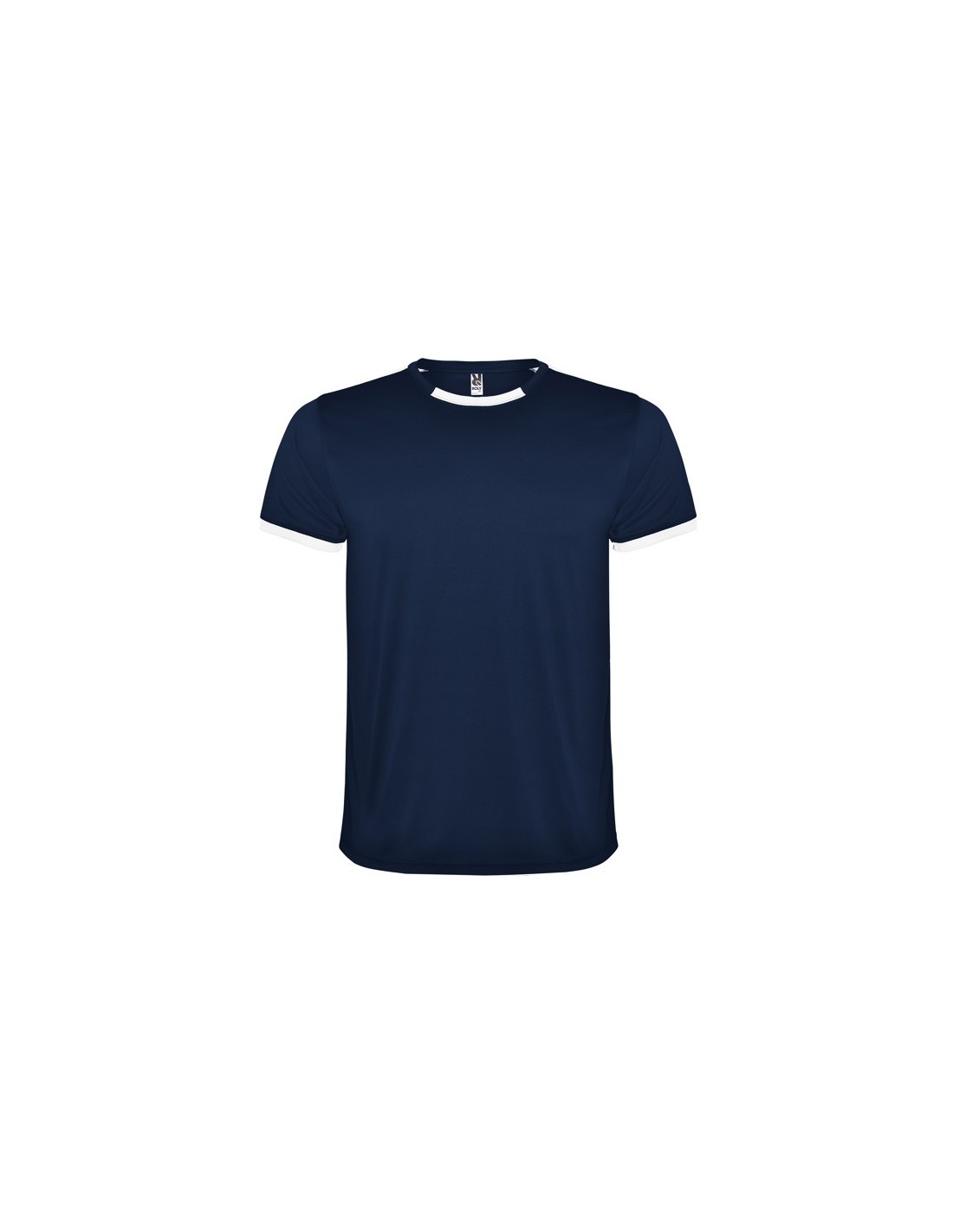 Conjunto deportivo unisex compuesto de 2 camisetas + 1 pantalón. ·Manga corta con vivo ancho en contraste. ·El color de la segunda camiseta se compone de manera contraria. ·Cuello redondo con ribete bicolor y con cubrecosturas reforzado en su interior. ·Pantalón con cinturilla elástica con cordón interior al tono con pespunte de seguridad.