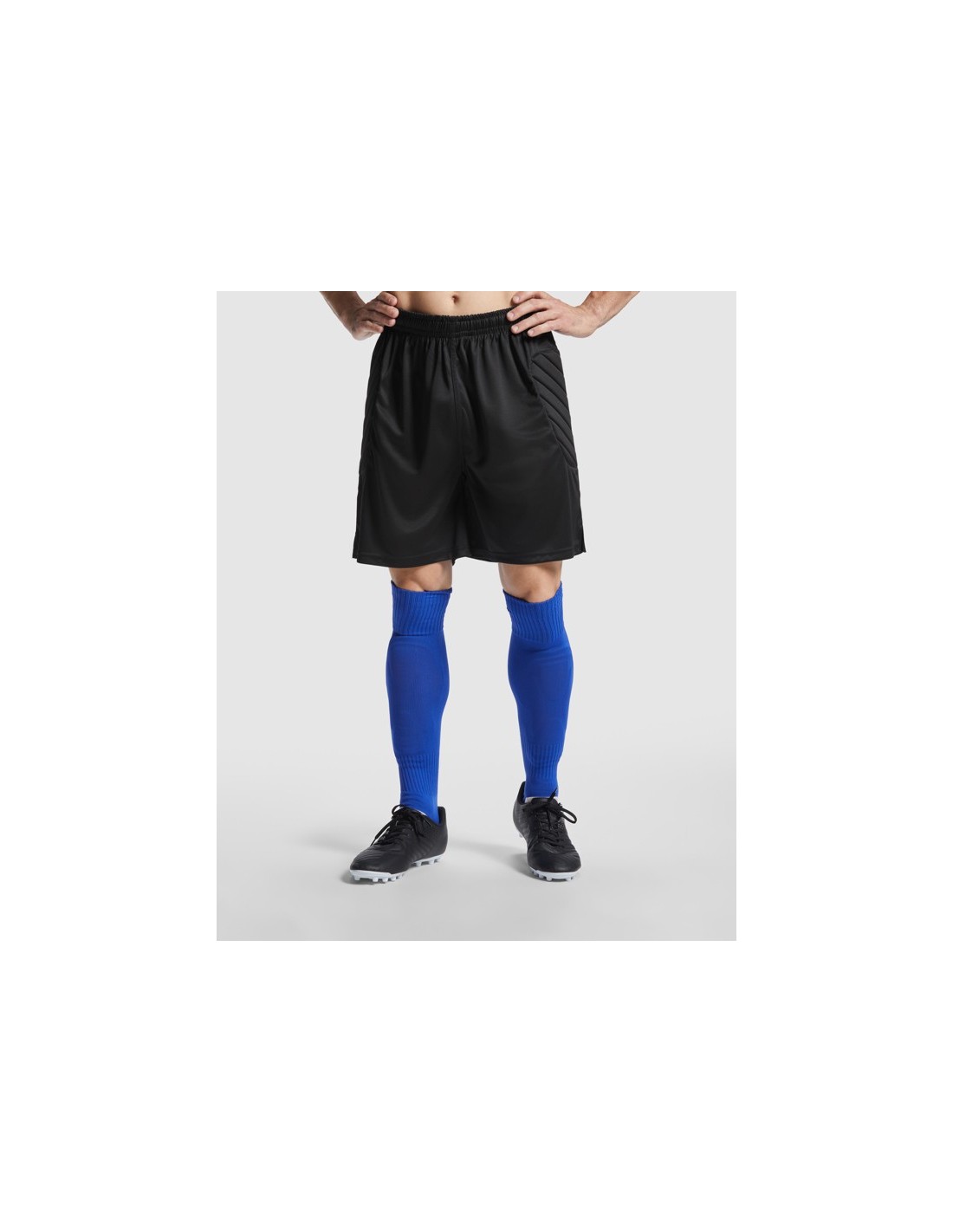 Pantalón corto de portero unisex, con inserciones laterales acolchadas y cinturilla elástica con cordón interior ajustable.