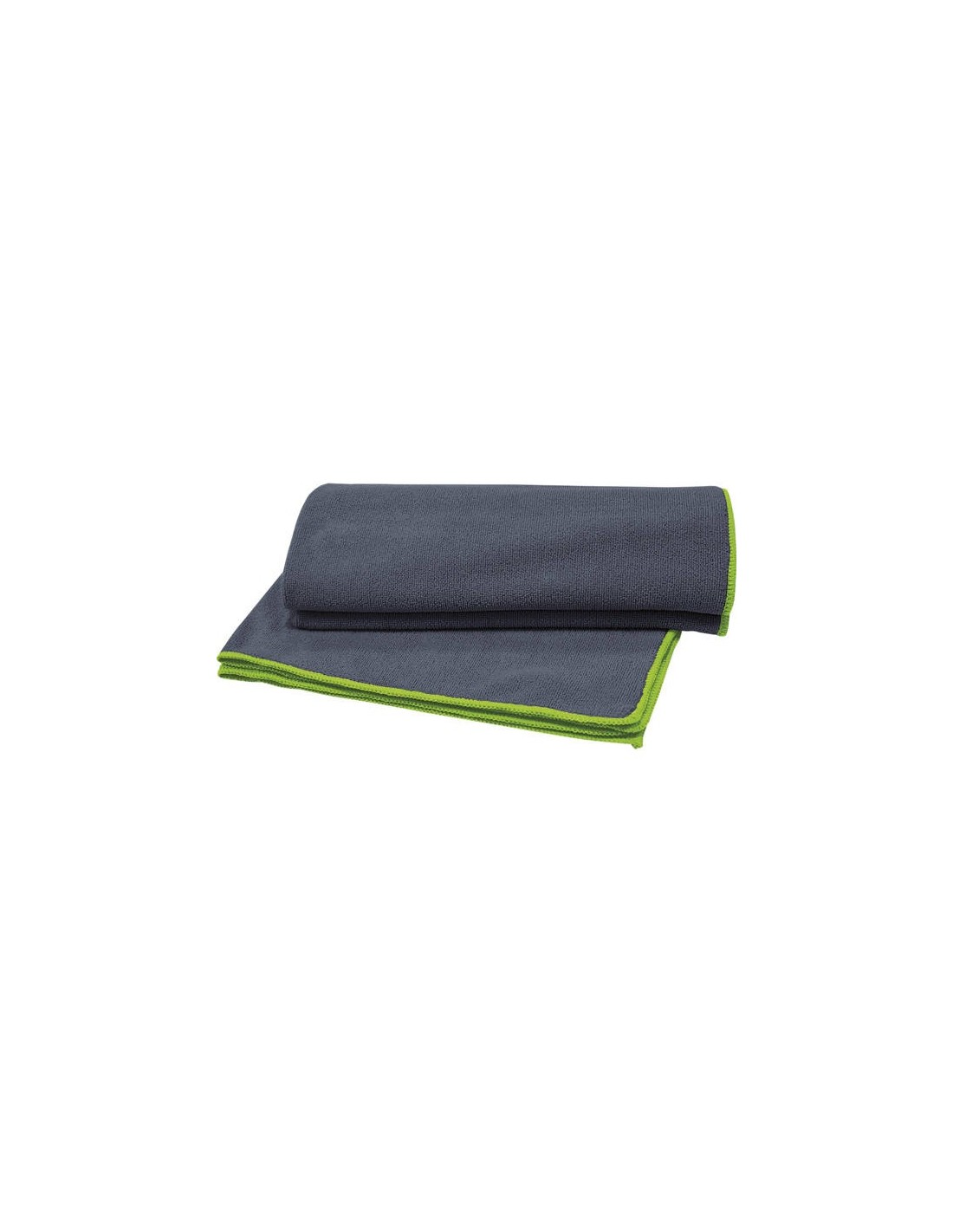 Toalla de baño y playa, remallado con filamento de poliéster a tres hilos mismo tono, excepto en el color plomo oscuro (ref. 46) que el remallado es en amarillo flúor (ref. 221). Adorno elástico para plegado.