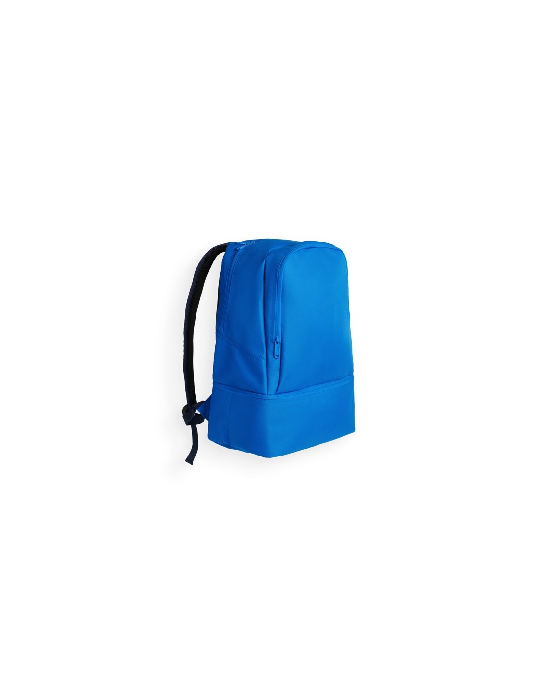 Mochila deportiva bicolor con diseño ergonómico y de fácil personalización. Doble asa reforzada para hombros y asa especial de mano. Respaldo acolchado en los puntos de apoyo principales sobre la espalda. Bolsillo zapatillero acochado. Un bolsillo principal con doble tirador y un bolsillo frontal exterior de menor capacidad.