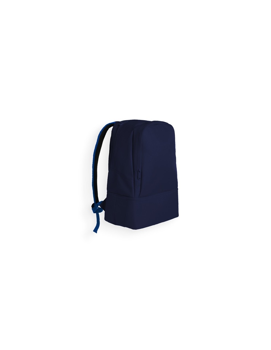 Mochila deportiva bicolor con diseño ergonómico y de fácil personalización. Doble asa reforzada para hombros y asa especial de mano. Respaldo acolchado en los puntos de apoyo principales sobre la espalda. Bolsillo zapatillero acochado. Un bolsillo principal con doble tirador y un bolsillo frontal exterior de menor capacidad.