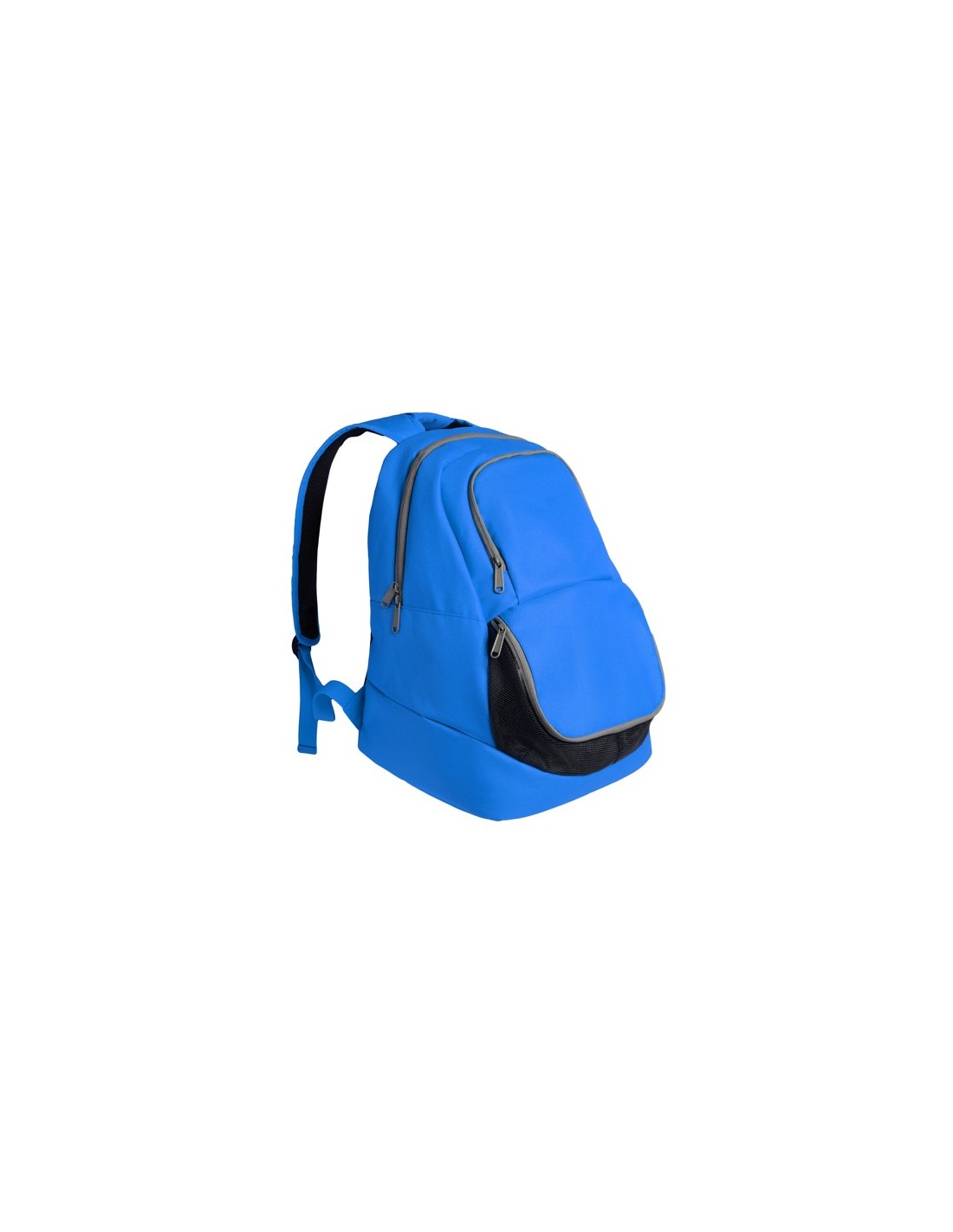 Mochila deportiva con diseño ergonómico y de fácil personalización. Doble asa reforzada para hombros y asa especial de mano. Respaldo acolchado. Bolsillo zapatillero de acceso frontal. Un bolsillo principal con doble tirador y un bolsillo frontal exterior de menor capacidad. Cremalleras a contraste en color gris. Detalles en color negro.