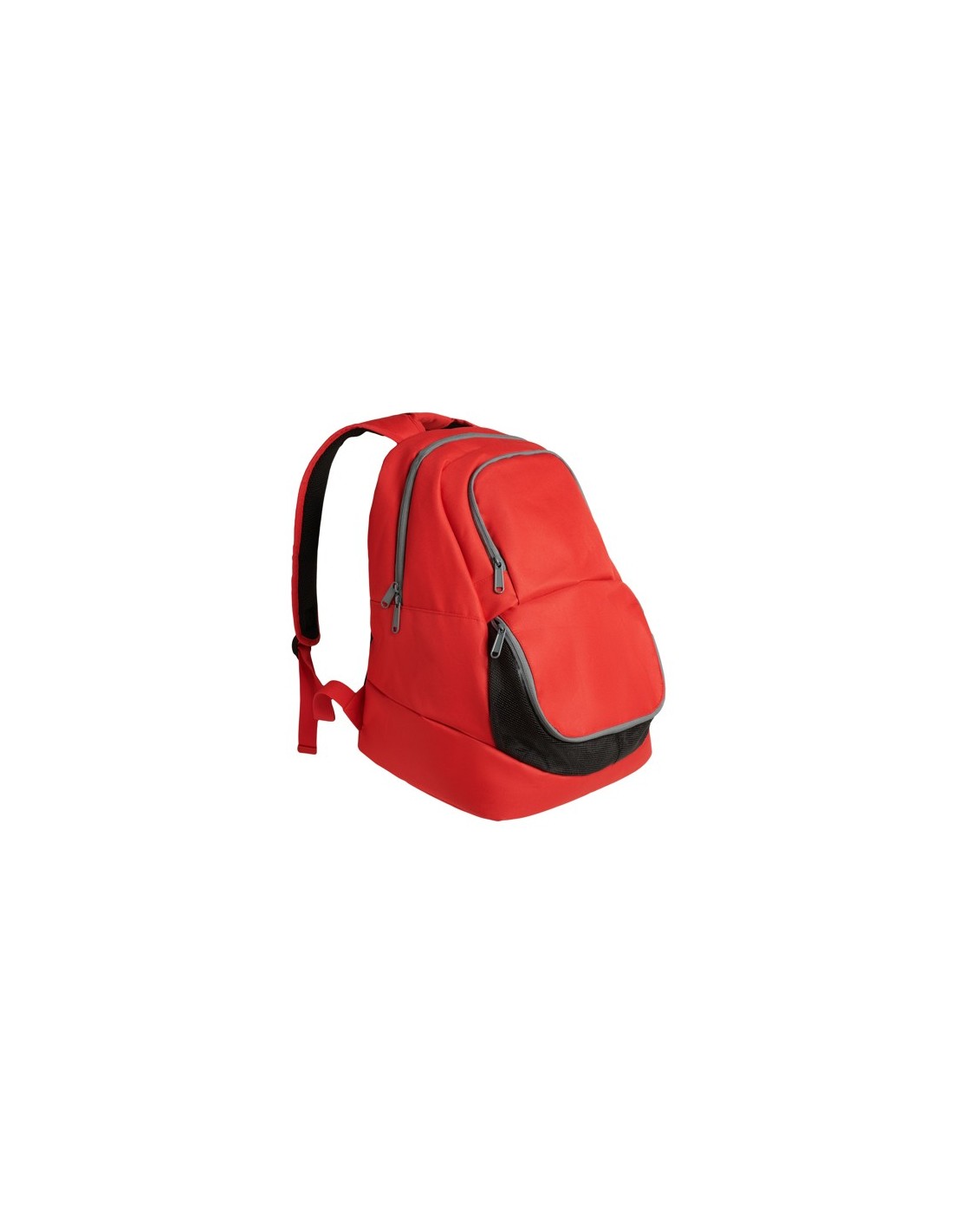 Mochila deportiva con diseño ergonómico y de fácil personalización. Doble asa reforzada para hombros y asa especial de mano. Respaldo acolchado. Bolsillo zapatillero de acceso frontal. Un bolsillo principal con doble tirador y un bolsillo frontal exterior de menor capacidad. Cremalleras a contraste en color gris. Detalles en color negro.