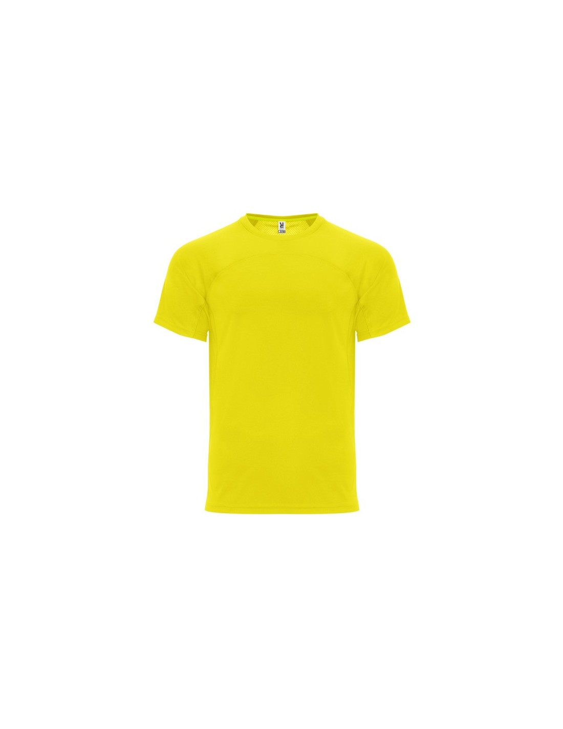 Camiseta técnica de manga ranglán unisex. Combinación de dos tejidos, frontal interlock y espalda rejilla 3D, ofrece un rendimiento versátil y suave . Cubre costuras de refuerzo a contraste en color amarillo flúor. Bajo espalda ligeramente más largo que el delantero.