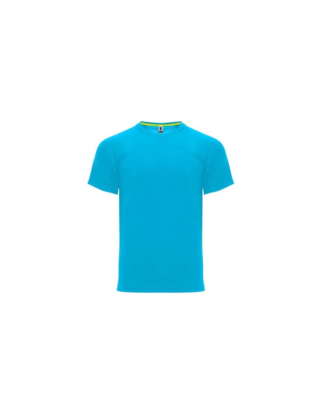 Camiseta técnica de manga ranglán unisex. Combinación de dos tejidos, frontal interlock y espalda rejilla 3D, ofrece un rendimiento versátil y suave . Cubre costuras de refuerzo a contraste en color amarillo flúor. Bajo espalda ligeramente más largo que el delantero.