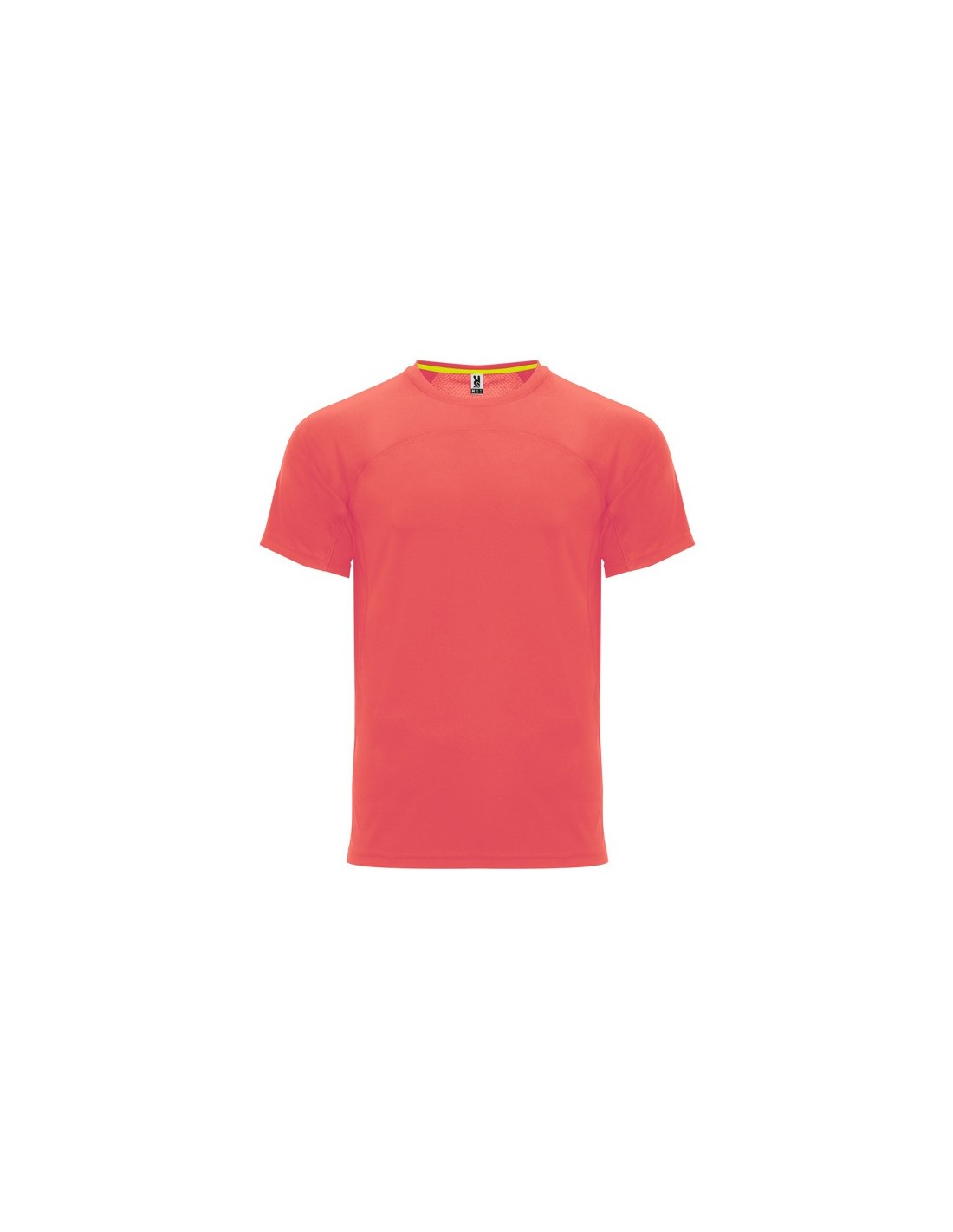 Camiseta técnica de manga ranglán unisex. Combinación de dos tejidos, frontal interlock y espalda rejilla 3D, ofrece un rendimiento versátil y suave . Cubre costuras de refuerzo a contraste en color amarillo flúor. Bajo espalda ligeramente más largo que el delantero.