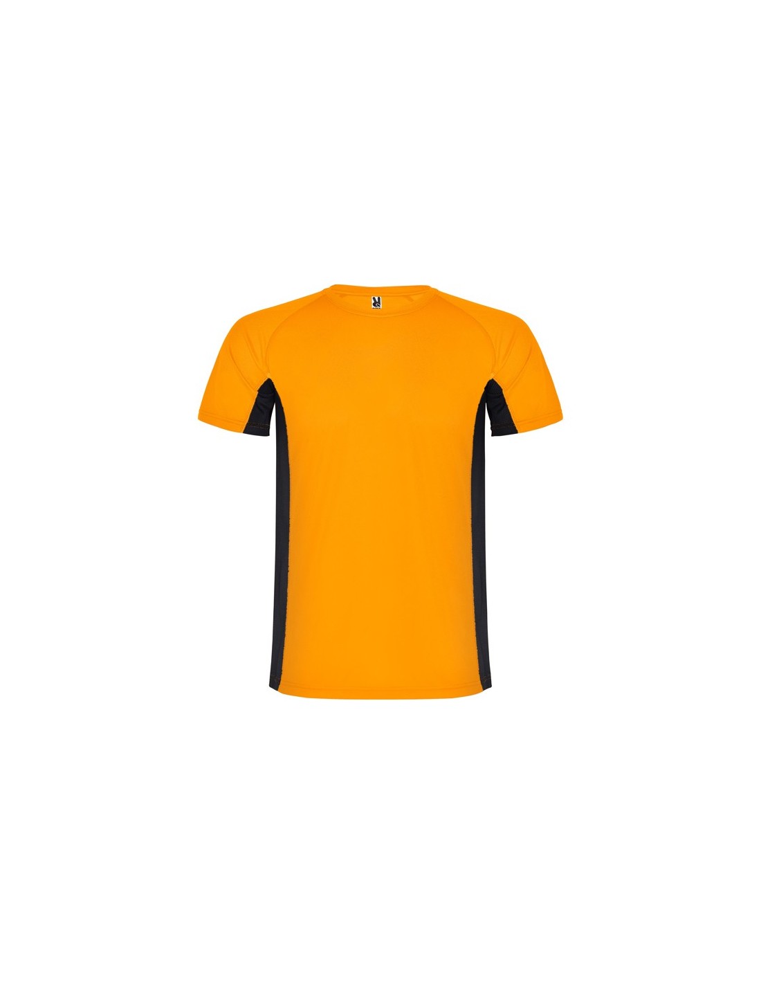 Camiseta técnica combinada con dos tejidos de poliéster, manga corta de estilo ranglán. Tejido principal bird's eye y paneles laterales e interior de la manga con tejido micro perforado. Cuello redondo con cubrecosturas de refuerzo en su interior. Camiseta de tejido confortable y fácilmente adaptable al cuerpo.