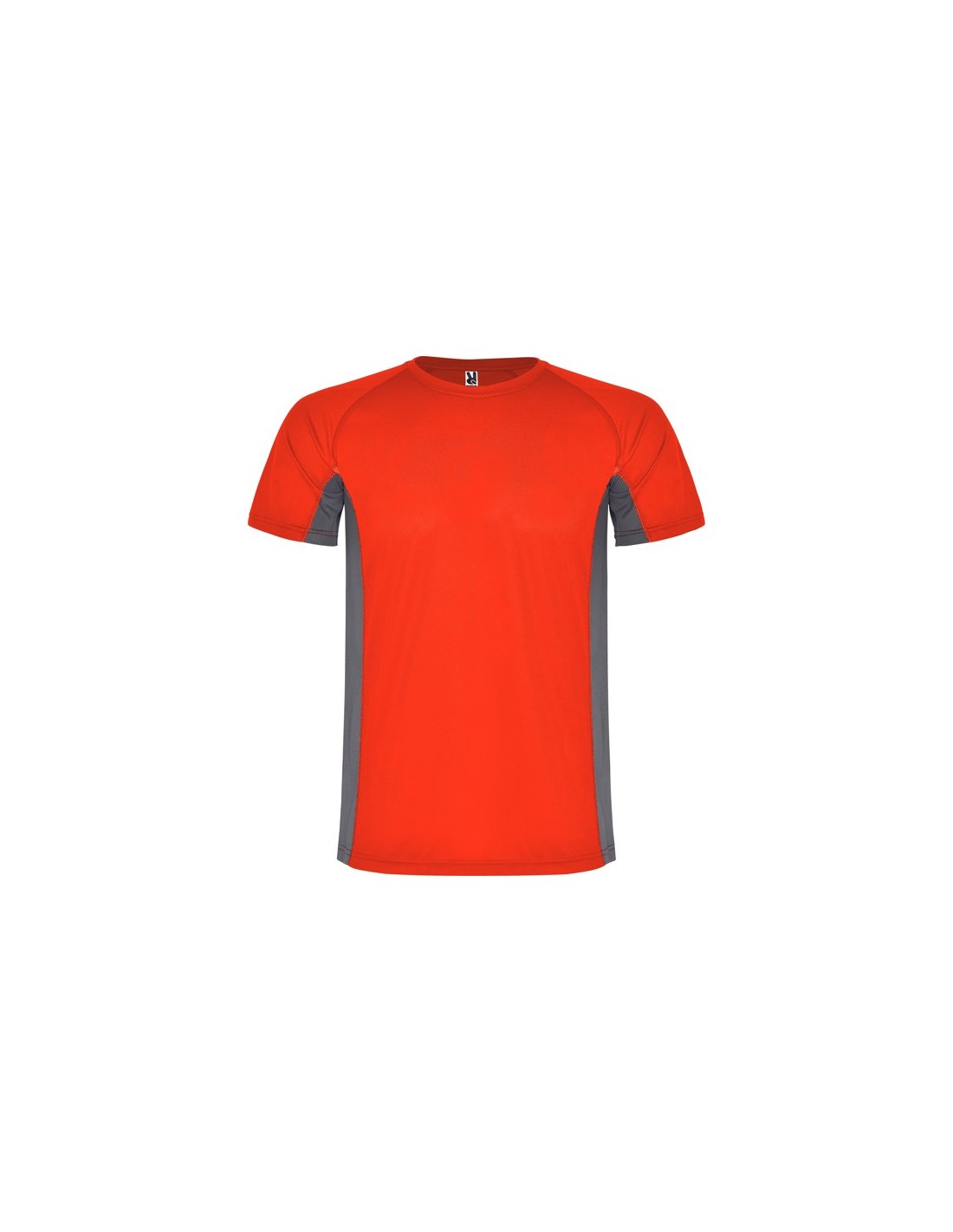 Camiseta técnica combinada con dos tejidos de poliéster, manga corta de estilo ranglán. Tejido principal bird's eye y paneles laterales e interior de la manga con tejido micro perforado. Cuello redondo con cubrecosturas de refuerzo en su interior. Camiseta de tejido confortable y fácilmente adaptable al cuerpo.