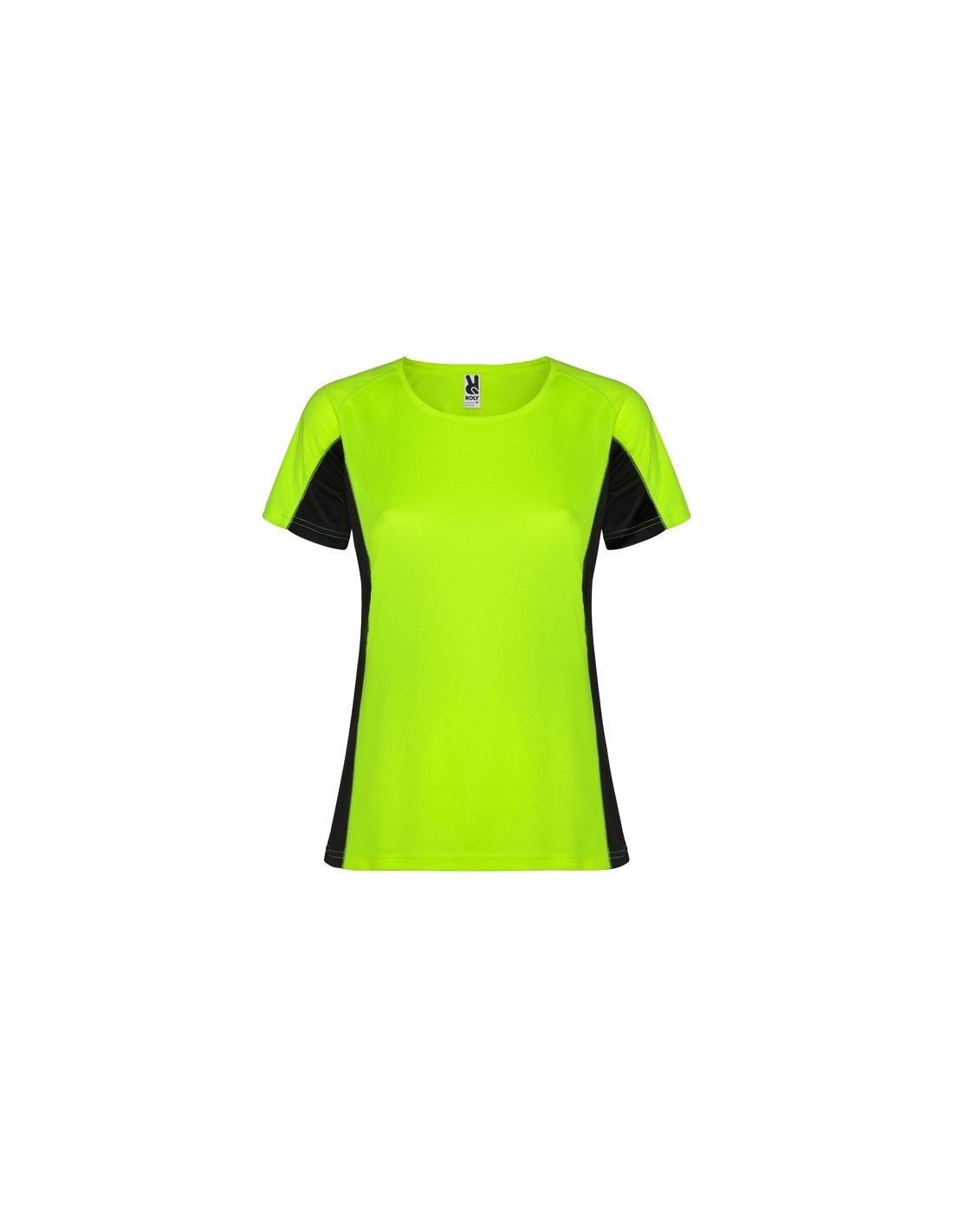 Camiseta técnica combinada con dos tejidos de poliéster, manga corta de estilo ranglán. Tejido principal bird's eye y paneles laterales e interior de la manga con tejido microperforado. Cuello redondo con cubrecosturas de refuerzo en su interior. Camiseta de tejido confortable y fácilmente adaptable al cuerpo.