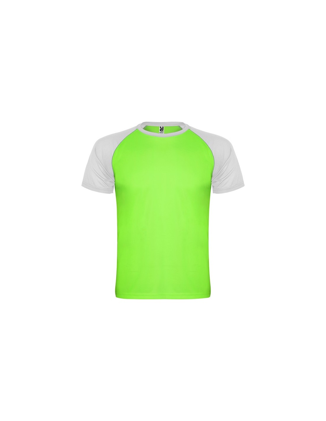 Camiseta deportiva de manga corta estilo ranglan en contraste. Cuello redondo en contraste con cubrecosturas de refuerzo.