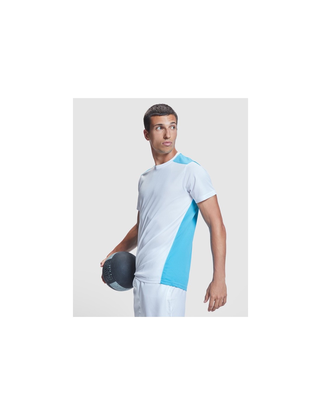 Camiseta técnica de manga corta, con cuello redondo. Combinada en espalda y hombros con dos tejidos de poliéster. Tejido principal frontal bird´s eye y tejido rejilla 3D transpirable en la parte trasera. Tejido preparado para la absorción de humedad. Pespuntes decorativos zigzag en hombros y costados frontales. Patronaje en la espalda ligeramente mas largo.