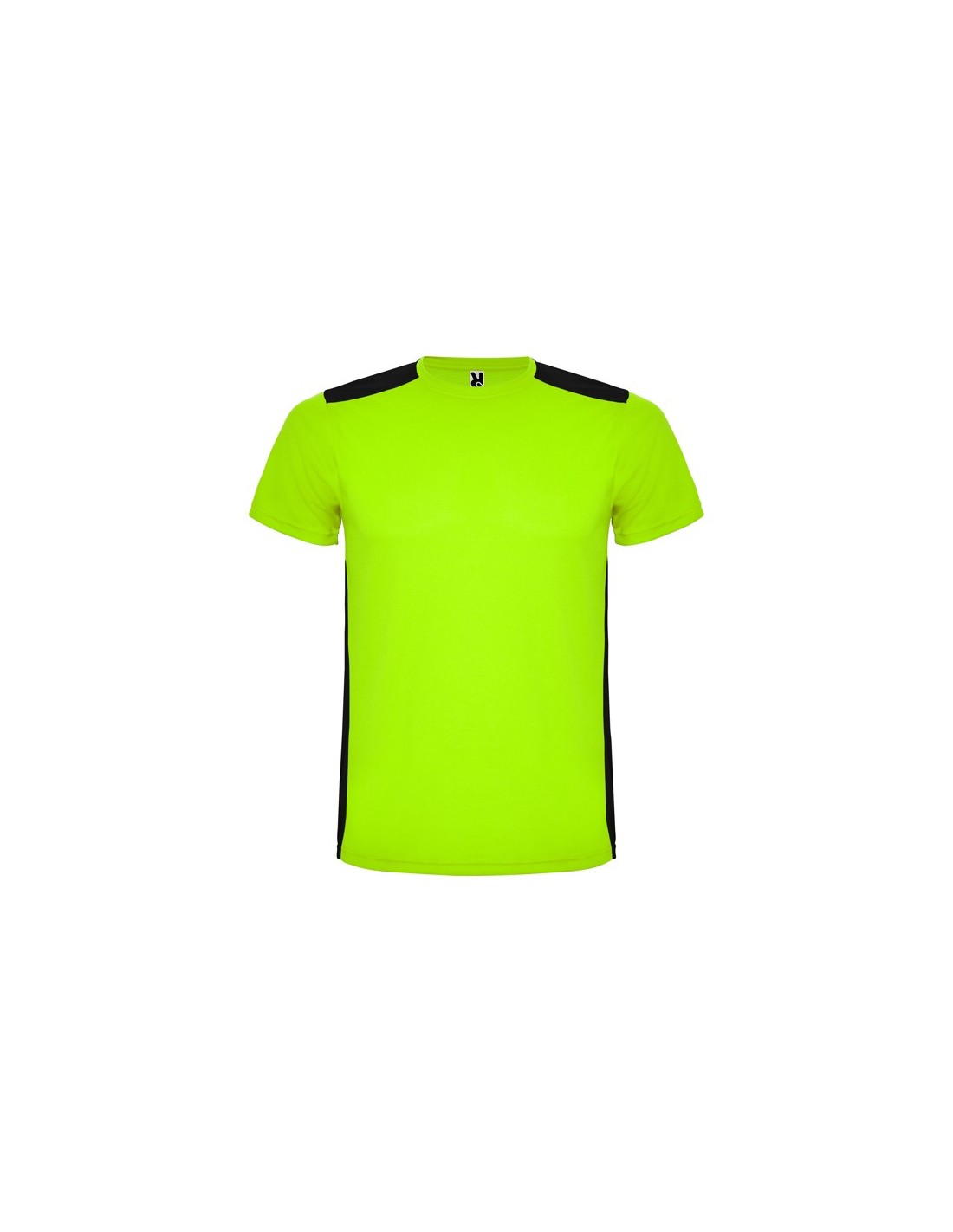 Camiseta técnica de manga corta, con cuello redondo. Combinada en espalda y hombros con dos tejidos de poliéster. Tejido principal frontal bird´s eye y tejido rejilla 3D transpirable en la parte trasera. Tejido preparado para la absorción de humedad. Pespuntes decorativos zigzag en hombros y costados frontales. Patronaje en la espalda ligeramente mas largo.