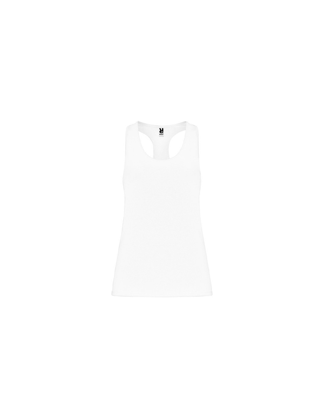 Camiseta técnica de tirantes entallada transpirable. Espalda nadadora con escote y sisas ribeteado. Tejido poliéster tacto algodón de secado fácil. Corte entallado.