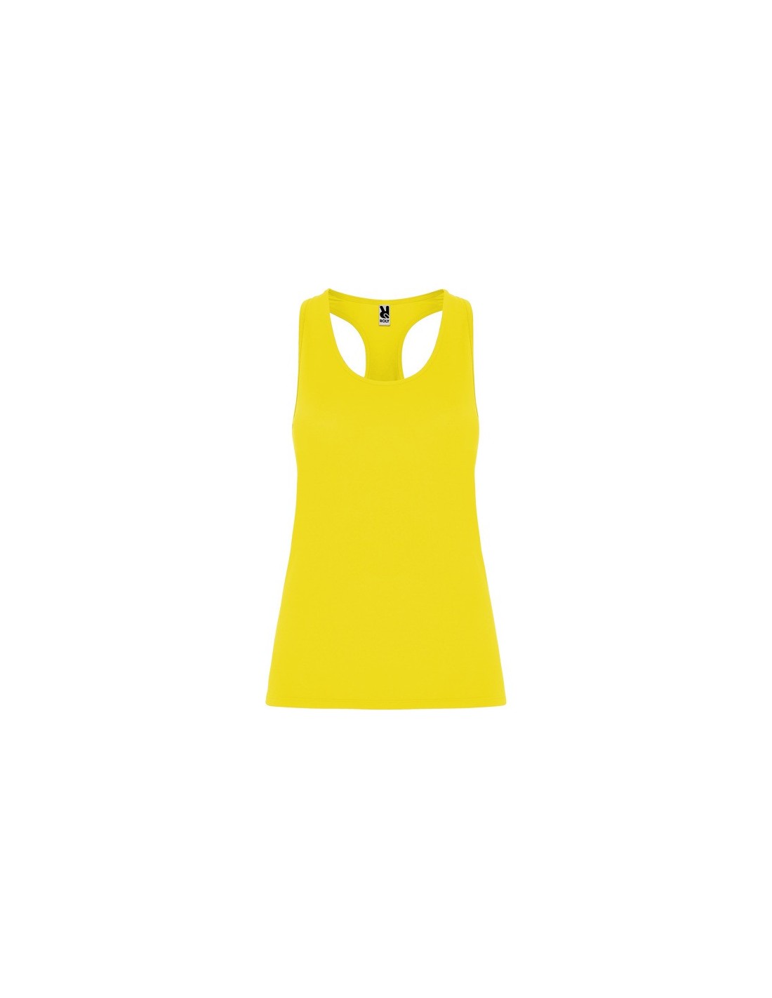 Camiseta técnica de tirantes entallada transpirable. Espalda nadadora con escote y sisas ribeteado. Tejido poliéster tacto algodón de secado fácil. Corte entallado.