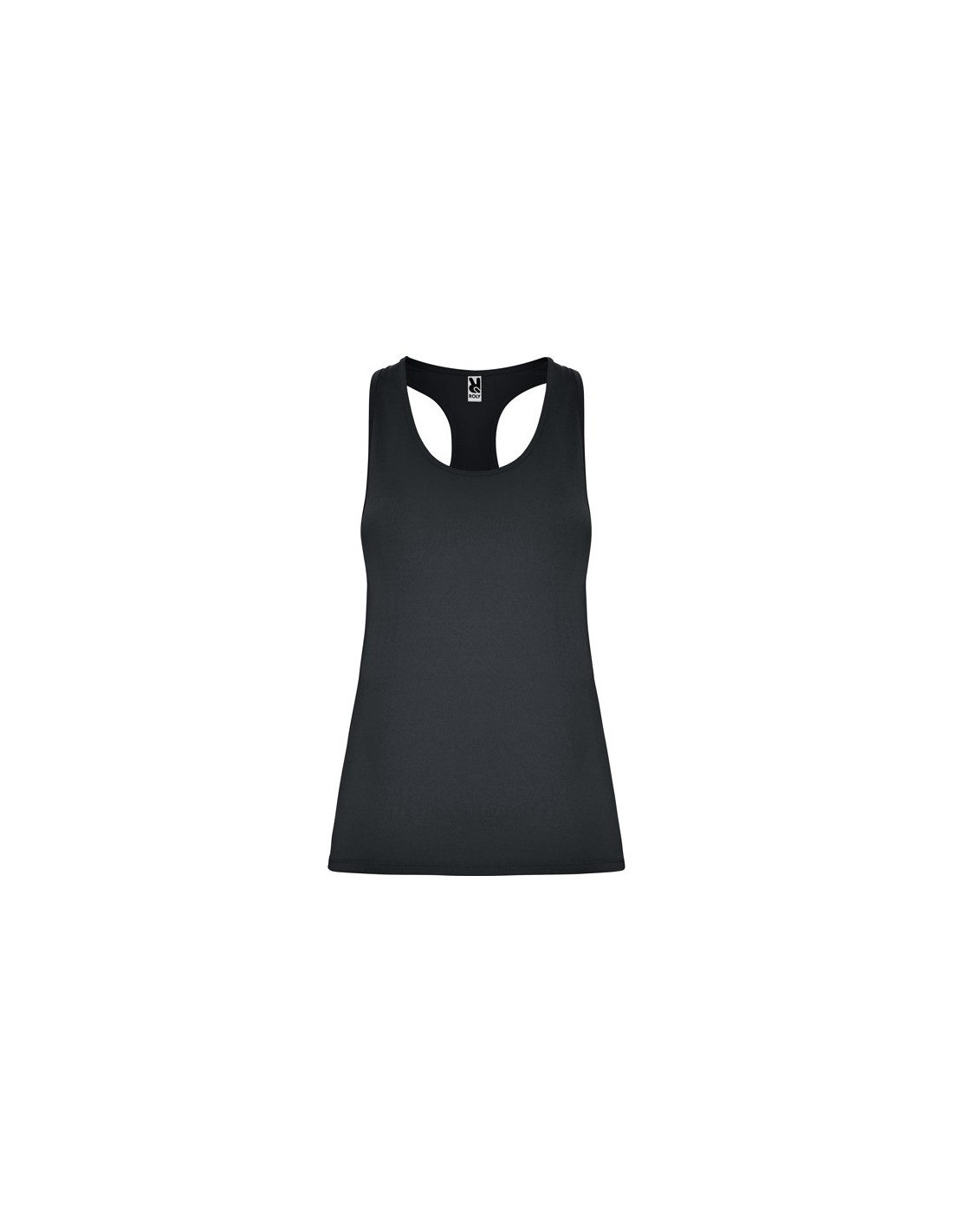Camiseta técnica de tirantes entallada transpirable. Espalda nadadora con escote y sisas ribeteado. Tejido poliéster tacto algodón de secado fácil. Corte entallado.