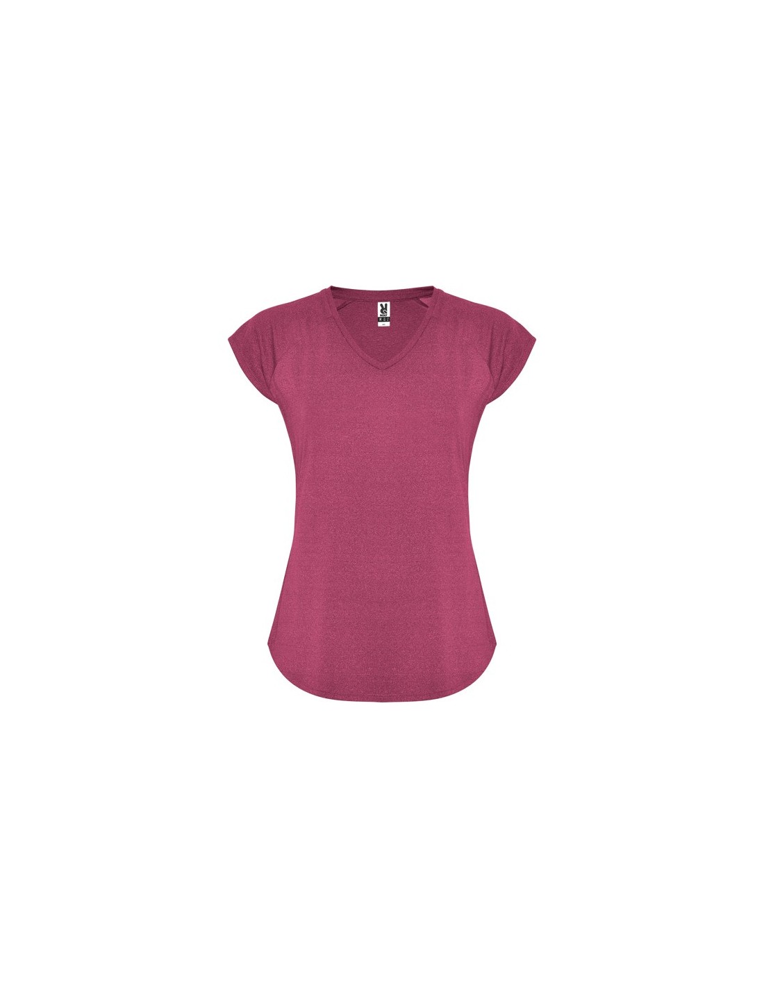 Camiseta técnica multi-deporte de mujer manga corta estilo manga ranglan. Cuello pico. Tejido poliéster con tacto algodón. Corte entallado.