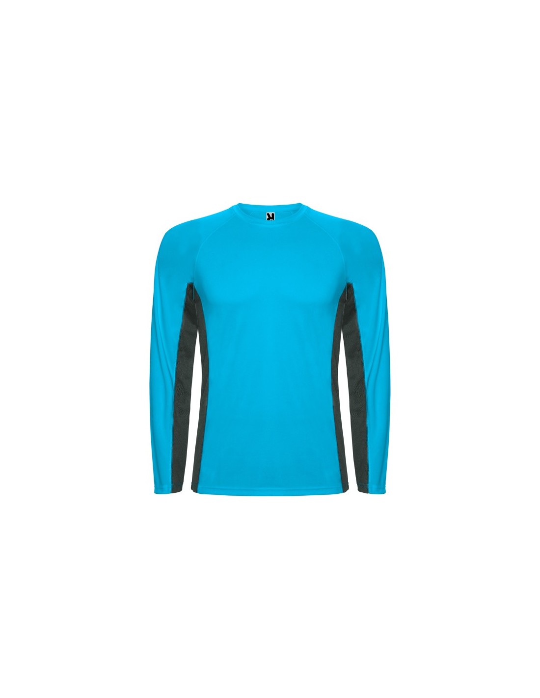 Camiseta técnica combinada, con dos tejidos de poliéster. Manga larga de estilo ranglán. Tejido principal bird´s eye y paneles laterales e interior de la manga con tejido micro perforado. Cuello redondo con cubrecosturas de refuerzo en su interior. Camiseta de tejido confortable y fácilmente adaptable al cuerpo.