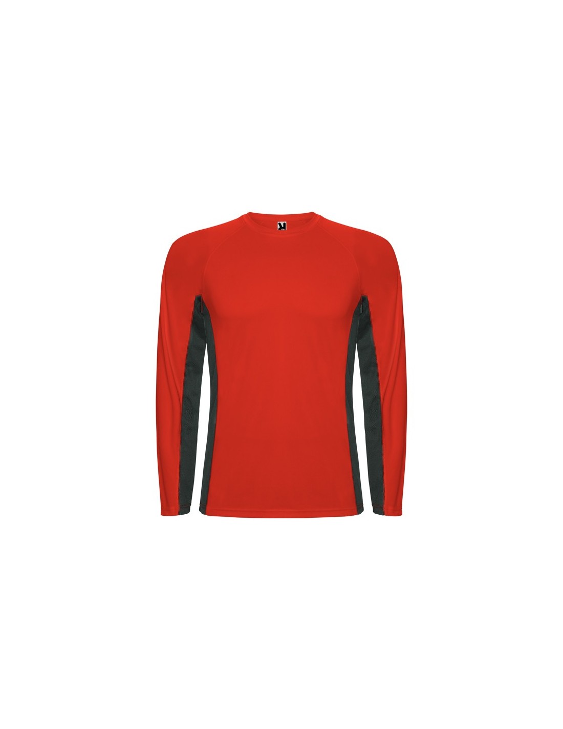 Camiseta técnica combinada, con dos tejidos de poliéster. Manga larga de estilo ranglán. Tejido principal bird´s eye y paneles laterales e interior de la manga con tejido micro perforado. Cuello redondo con cubrecosturas de refuerzo en su interior. Camiseta de tejido confortable y fácilmente adaptable al cuerpo.