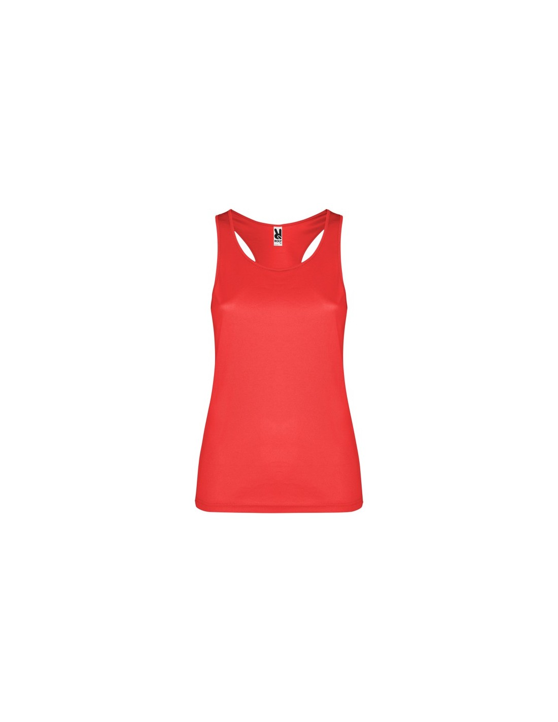 Camiseta técnica de tirantes entallada transpirable. Espalda nadadora con escote y sisas ribeteado.