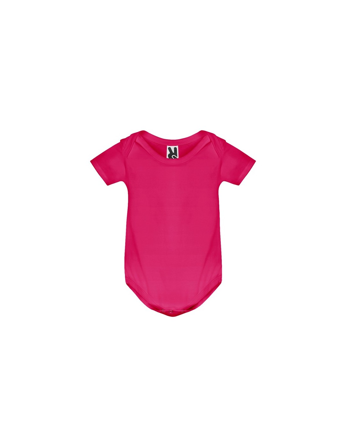 Body de bebé con manga corta de punto liso. Cuello redondo y bajo ribeteado en canalé 1x1. Cierre con botones a presión en la entrepierna. Hombro de apertura cruzada.