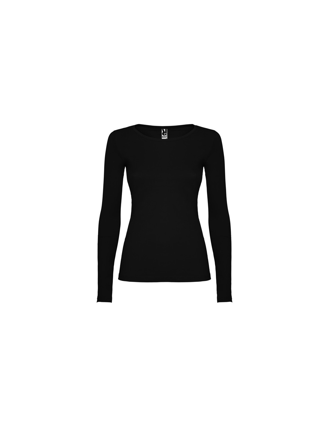 Camiseta semientallada, de manga larga y cuello acabado con ribete fino. Sin puños. Costuras laterales.