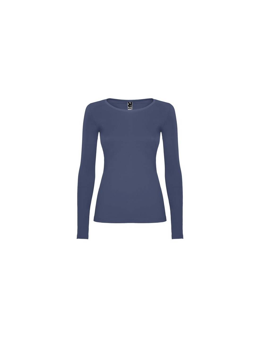 Camiseta semientallada, de manga larga y cuello acabado con ribete fino. Sin puños. Costuras laterales.