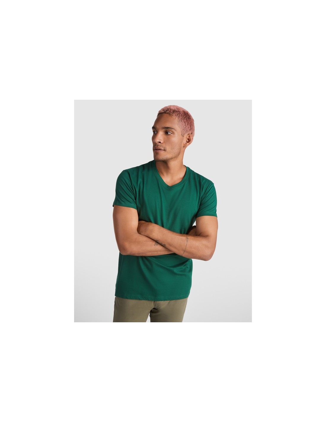 Camiseta de manga corta tubular y escote en pico de 2 capas. Cubrecosturas reforzado en cuello y hombros.