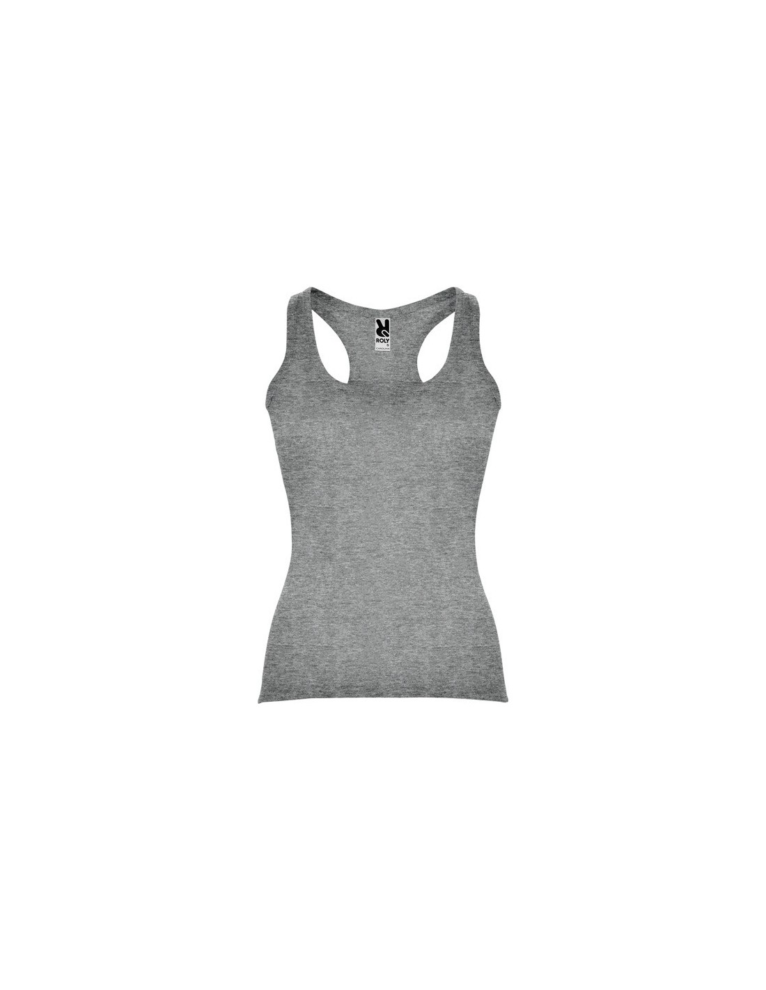 Camiseta entallada, con sisas y escote ribeteado, ancho y enrollado. Espalda estilo nadadora y costuras laterales.