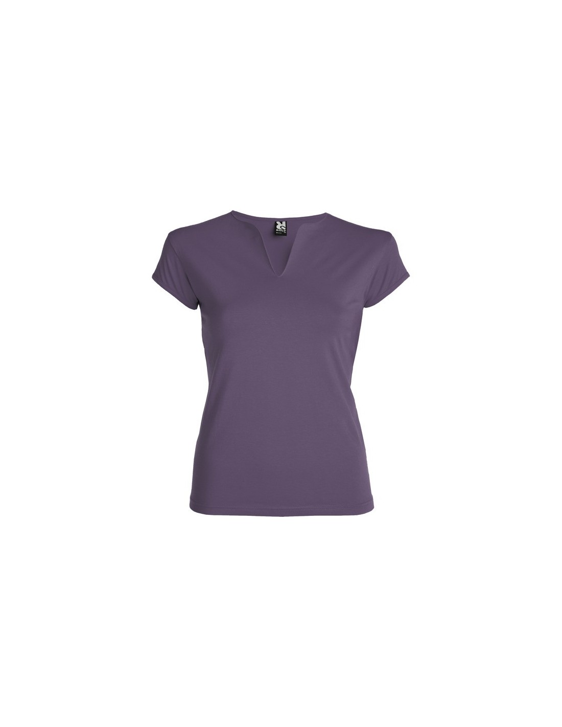 Camiseta entallada de cuello redondo con abertura en V, semi-manga al hombro ribeteada y costuras laterales.