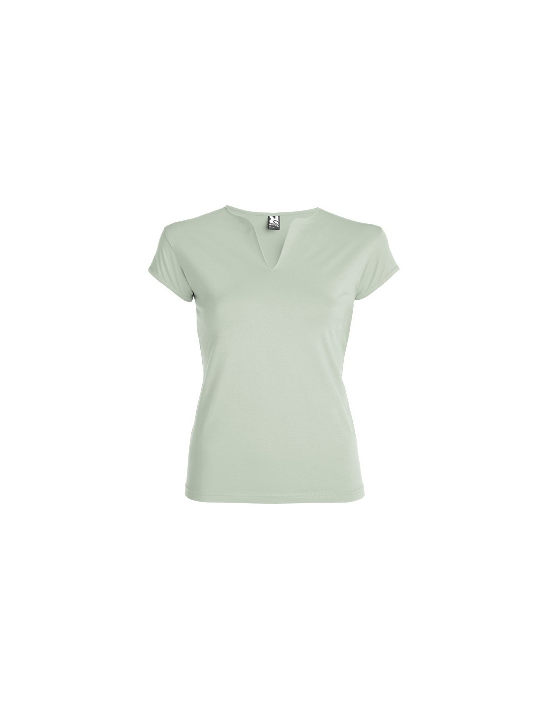 Camiseta entallada de cuello redondo con abertura en V, semi-manga al hombro ribeteada y costuras laterales.
