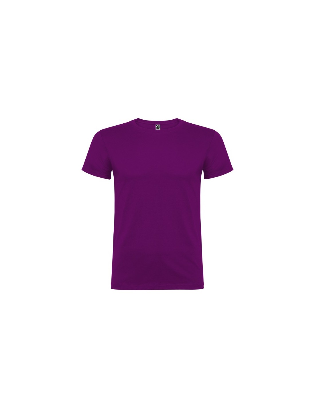 Camiseta de manga corta de cuello redondo doble con elastano, confeccionada en tejido tubular en tallas de adulto, y con costuras laterales en tallas de niño, con cubrecosturas reforzado en cuello.