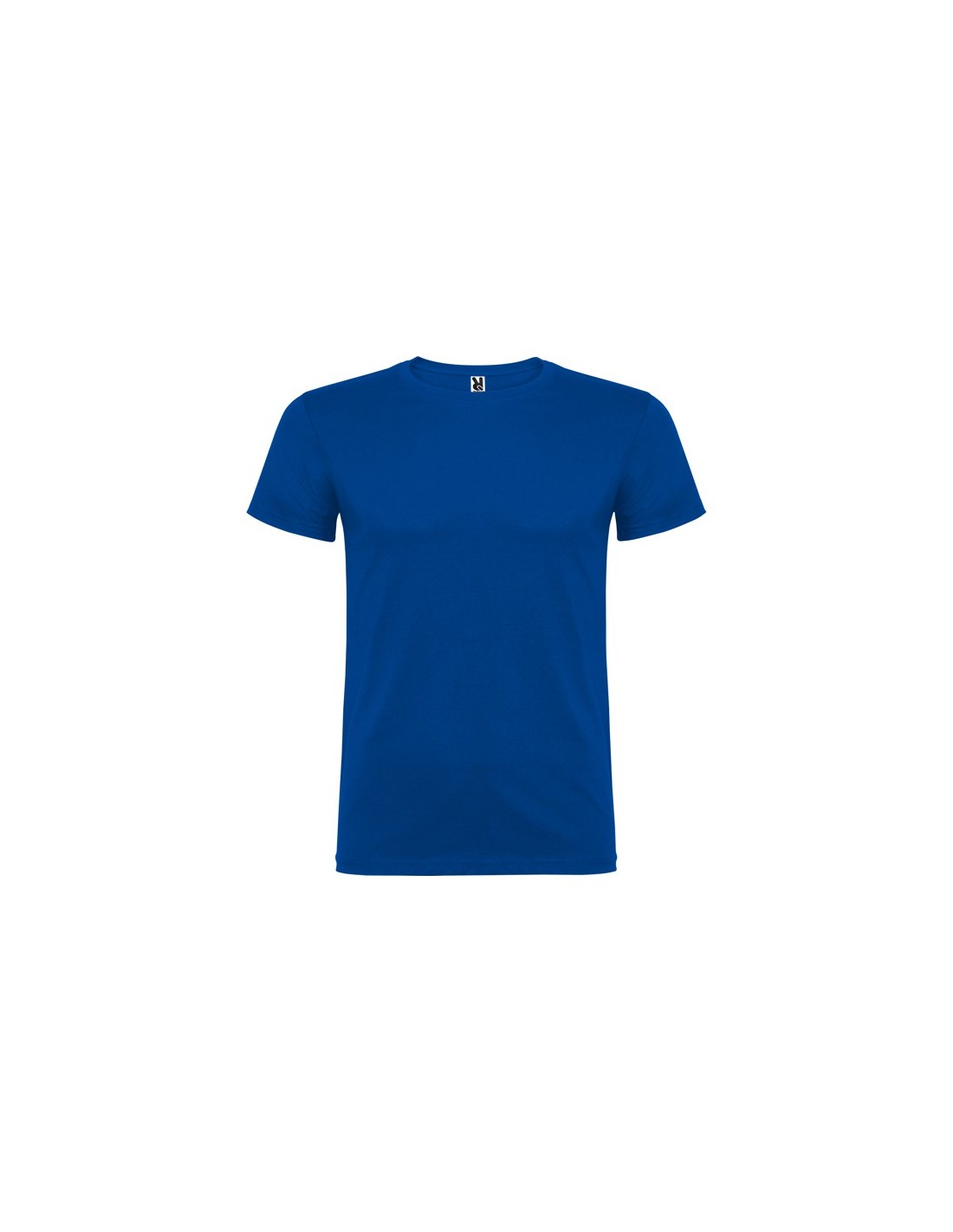 Camiseta de manga corta de cuello redondo doble con elastano, confeccionada en tejido tubular en tallas de adulto, y con costuras laterales en tallas de niño, con cubrecosturas reforzado en cuello.