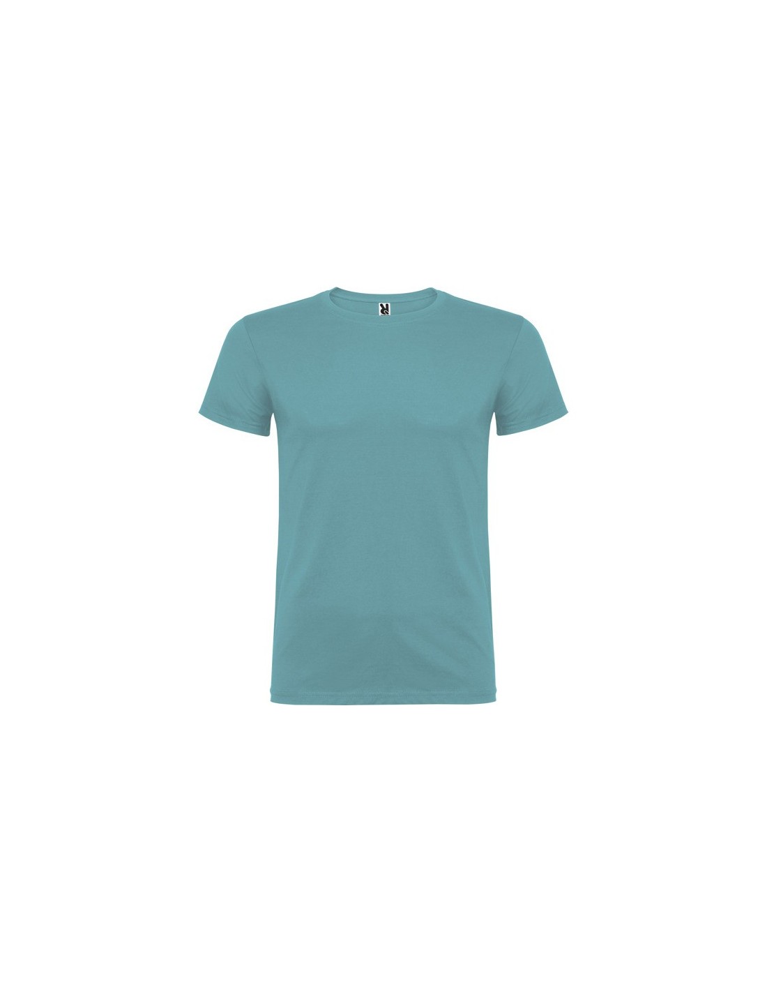 Camiseta de manga corta de cuello redondo doble con elastano, confeccionada en tejido tubular en tallas de adulto, y con costuras laterales en tallas de niño, con cubrecosturas reforzado en cuello.