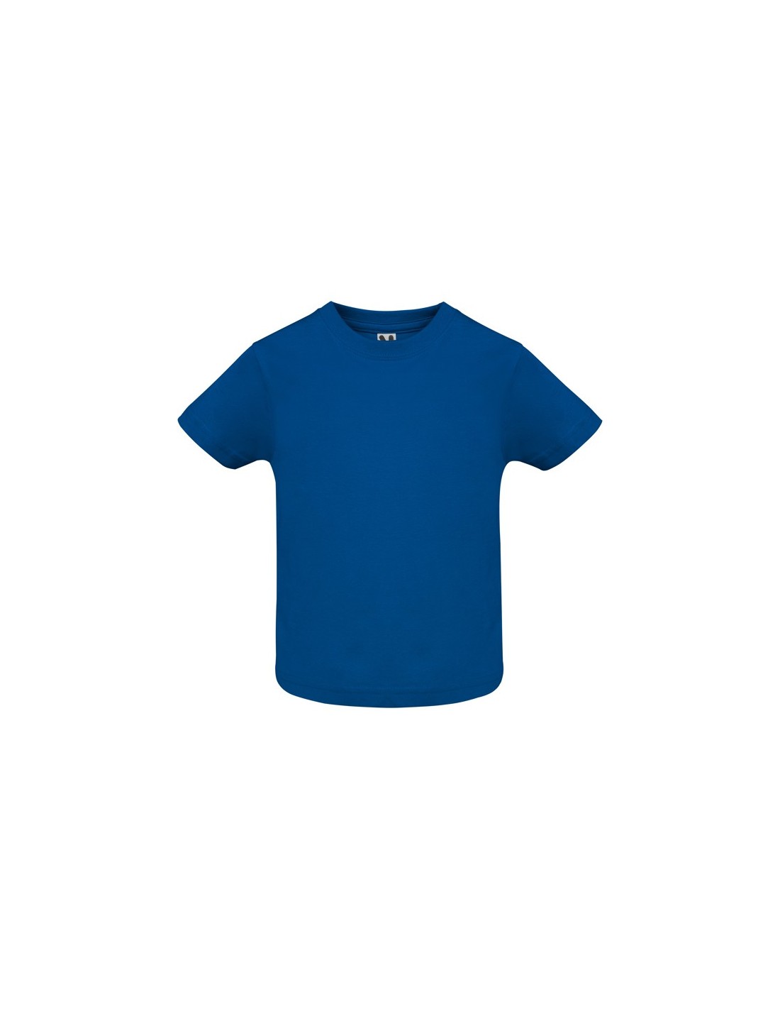 Camiseta de manga corta especial para bebé, confeccionada con tejido en galga fina y acabado compactado. Cuello redondo y apertura en el hombro con corchetes desde la talla 6m a 18m. Talla 2A sin apertura en el hombro. Costuras laterales.