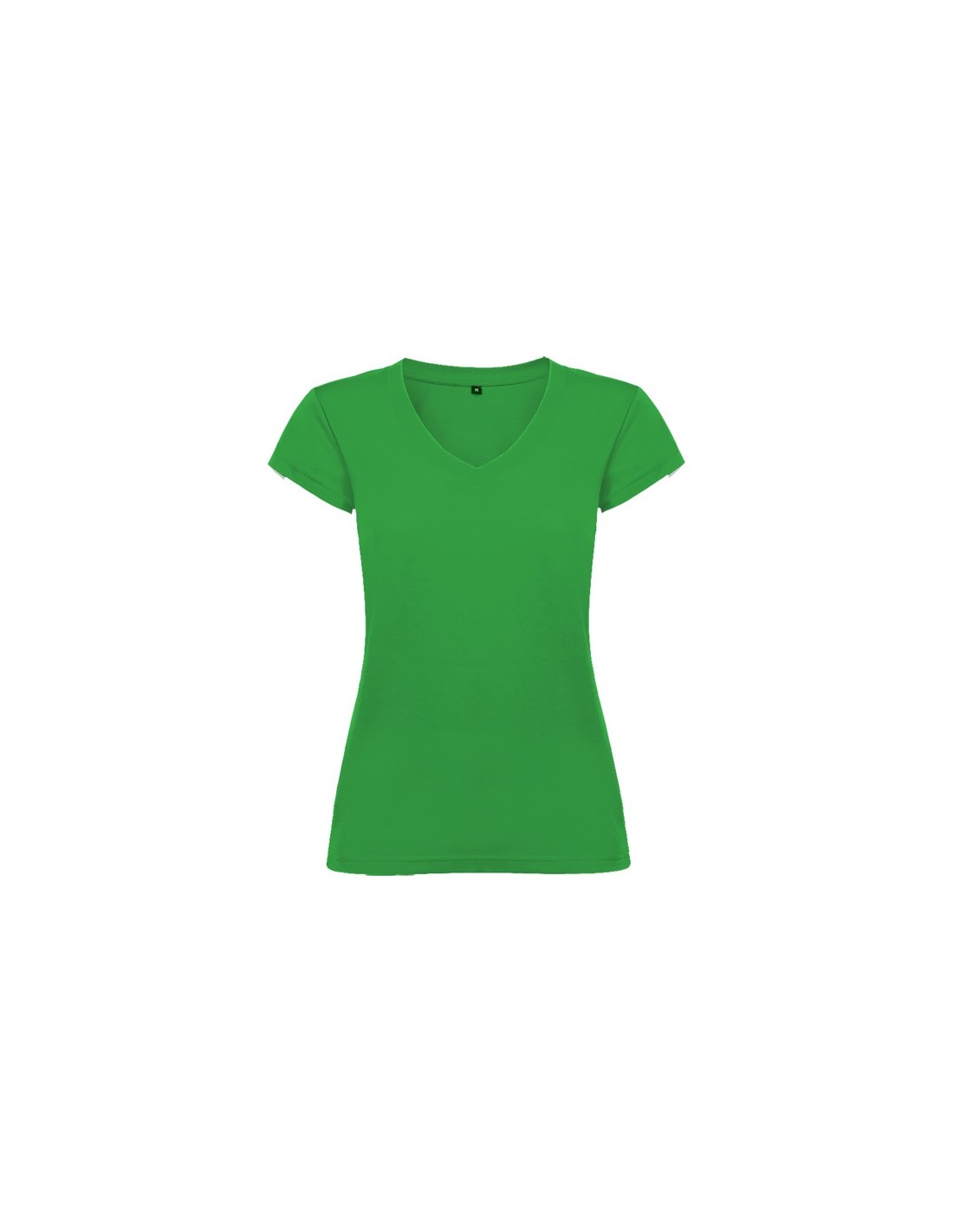 Camiseta de mujer con manga corta, escote en cuello de pico y acabados en ribete acanalado. Corte entallado con costuras laterales.