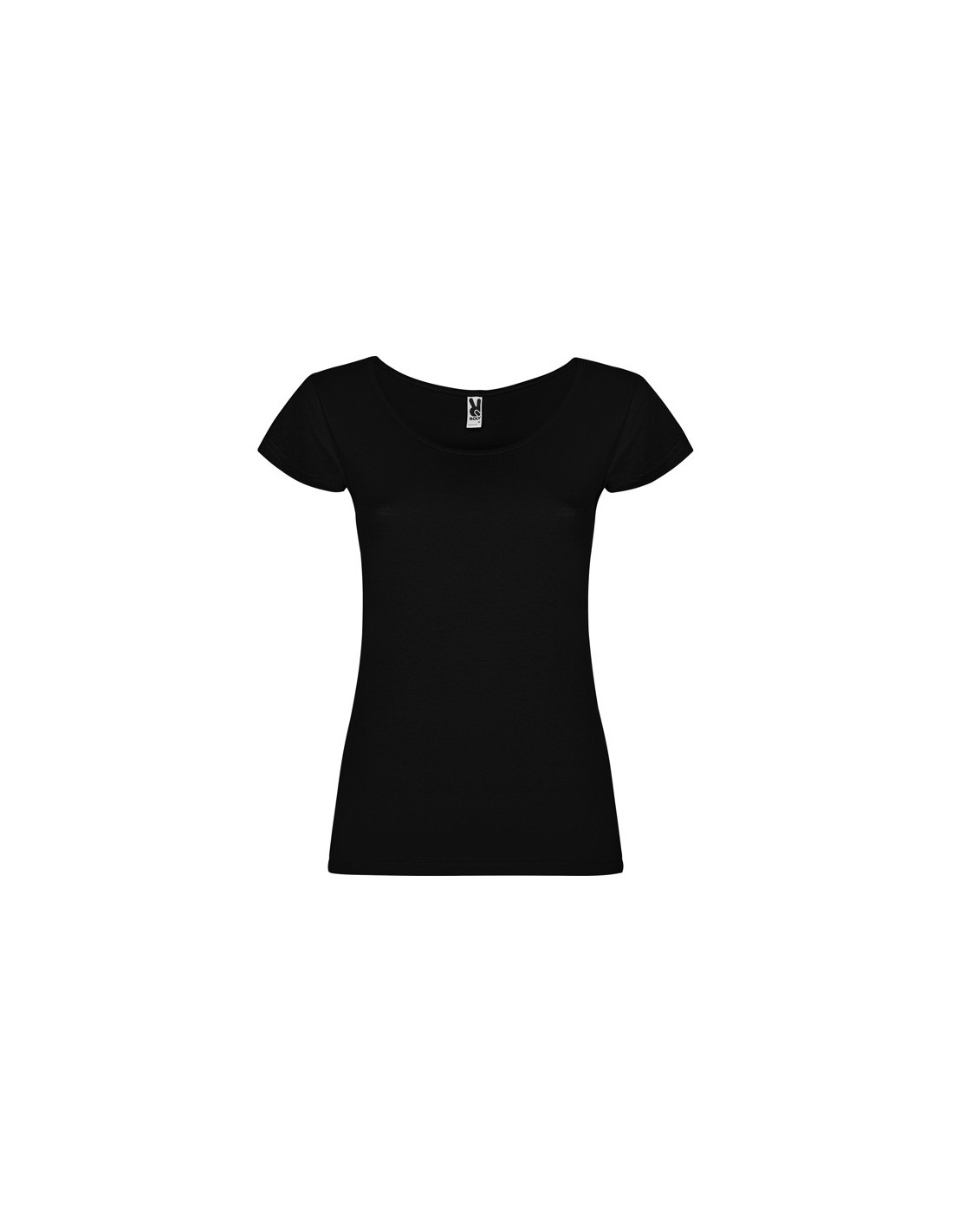 Camiseta de manga corta, escote redondo, ribeteado y pronunciado. Costuras laterales y de corte ajustado.