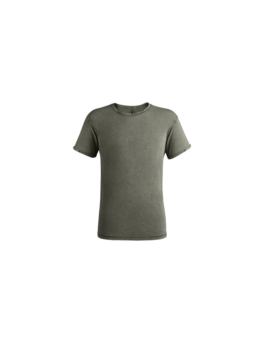 Camiseta de manga corta efecto jeans. Cuello redondo en canalé 1x1, con cubrecosturas de refuerzo interior de hombro a hombro. Doble costura en sisas. Apertura de manga con dobladillo.