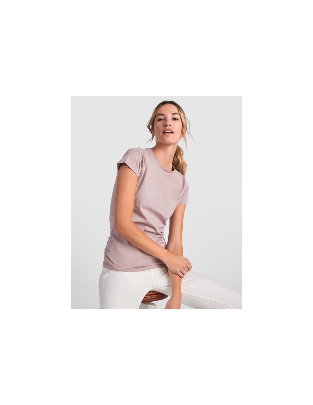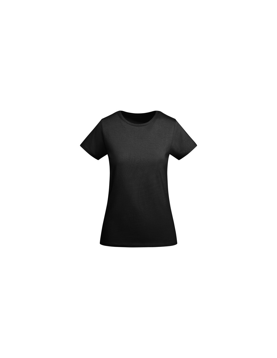 Camiseta de mujer entallada de manga corta en algodón orgánico certificado OCS. Cuello redondo en canalé 1x1. Cubrecosturas reforzado en cuello. Costuras laterales.
