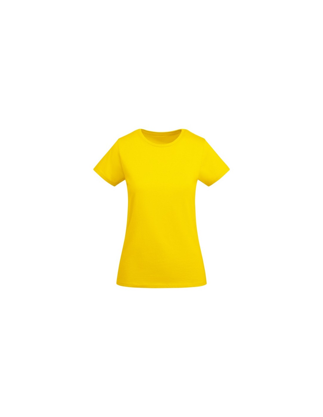 Camiseta de mujer entallada de manga corta en algodón orgánico certificado OCS. Cuello redondo en canalé 1x1. Cubrecosturas reforzado en cuello. Costuras laterales.