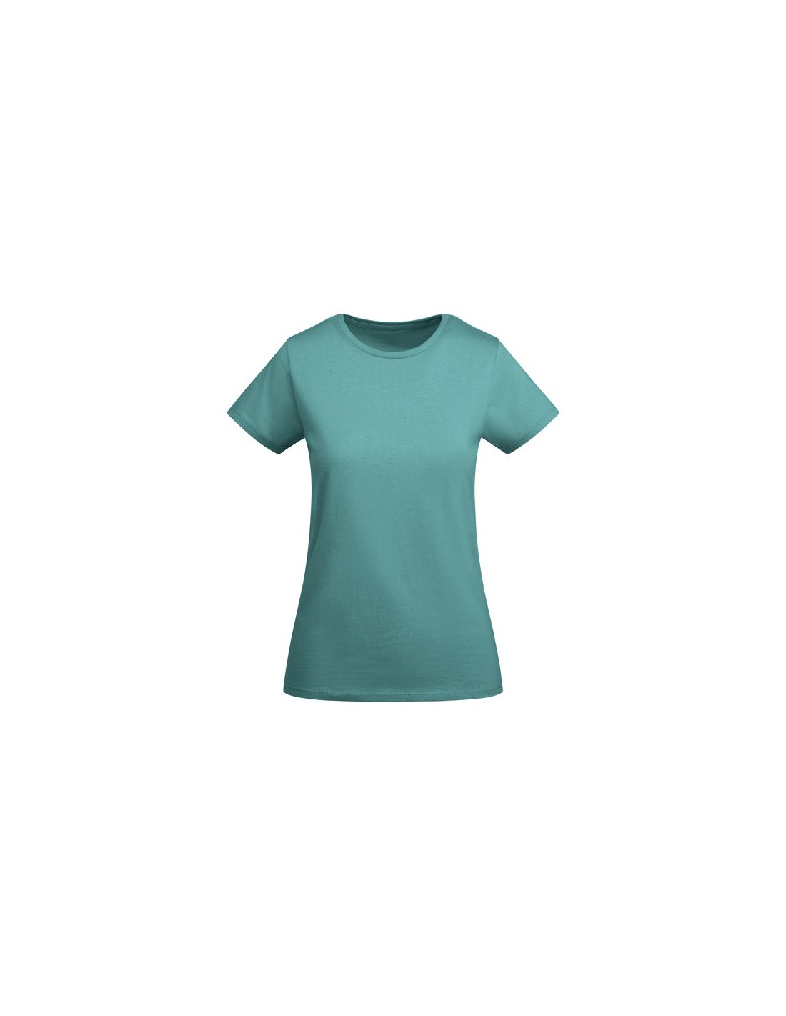 Camiseta de mujer entallada de manga corta en algodón orgánico certificado OCS. Cuello redondo en canalé 1x1. Cubrecosturas reforzado en cuello. Costuras laterales.