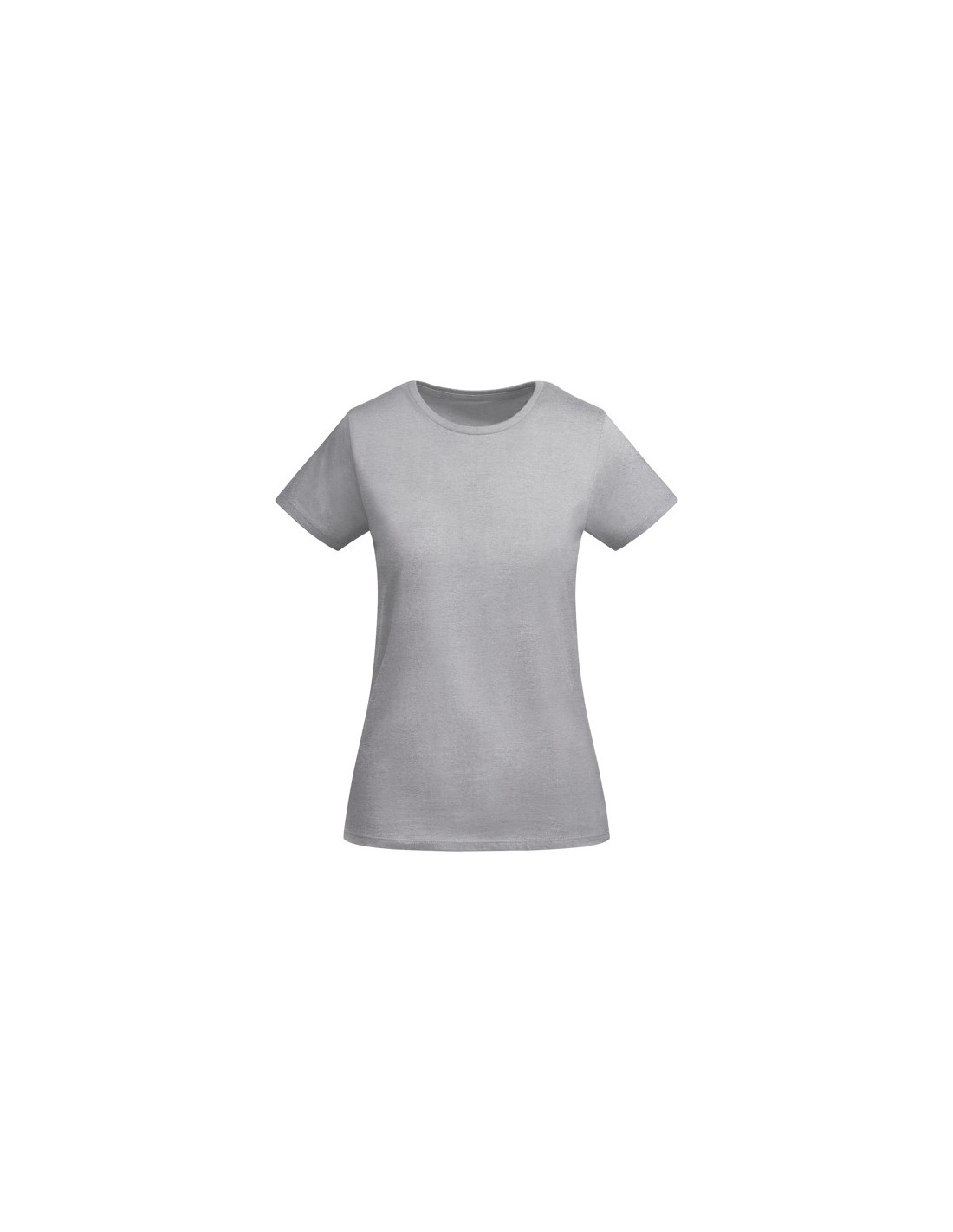 Camiseta de mujer entallada de manga corta en algodón orgánico certificado OCS. Cuello redondo en canalé 1x1. Cubrecosturas reforzado en cuello. Costuras laterales.