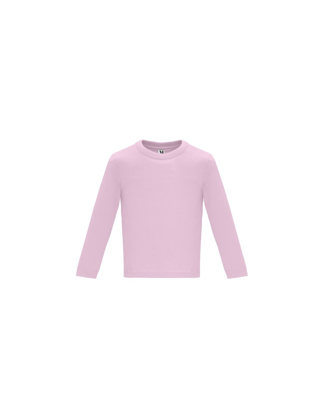 Camiseta de manga larga especial para bebé, confeccionada en tejido en galga fina y acabado compactado. Cuello redondo y apertura en hombro con corchetes desde la talla 6M a 18M. La talla 2A sin apertura en el hombro. Costuras laterales.