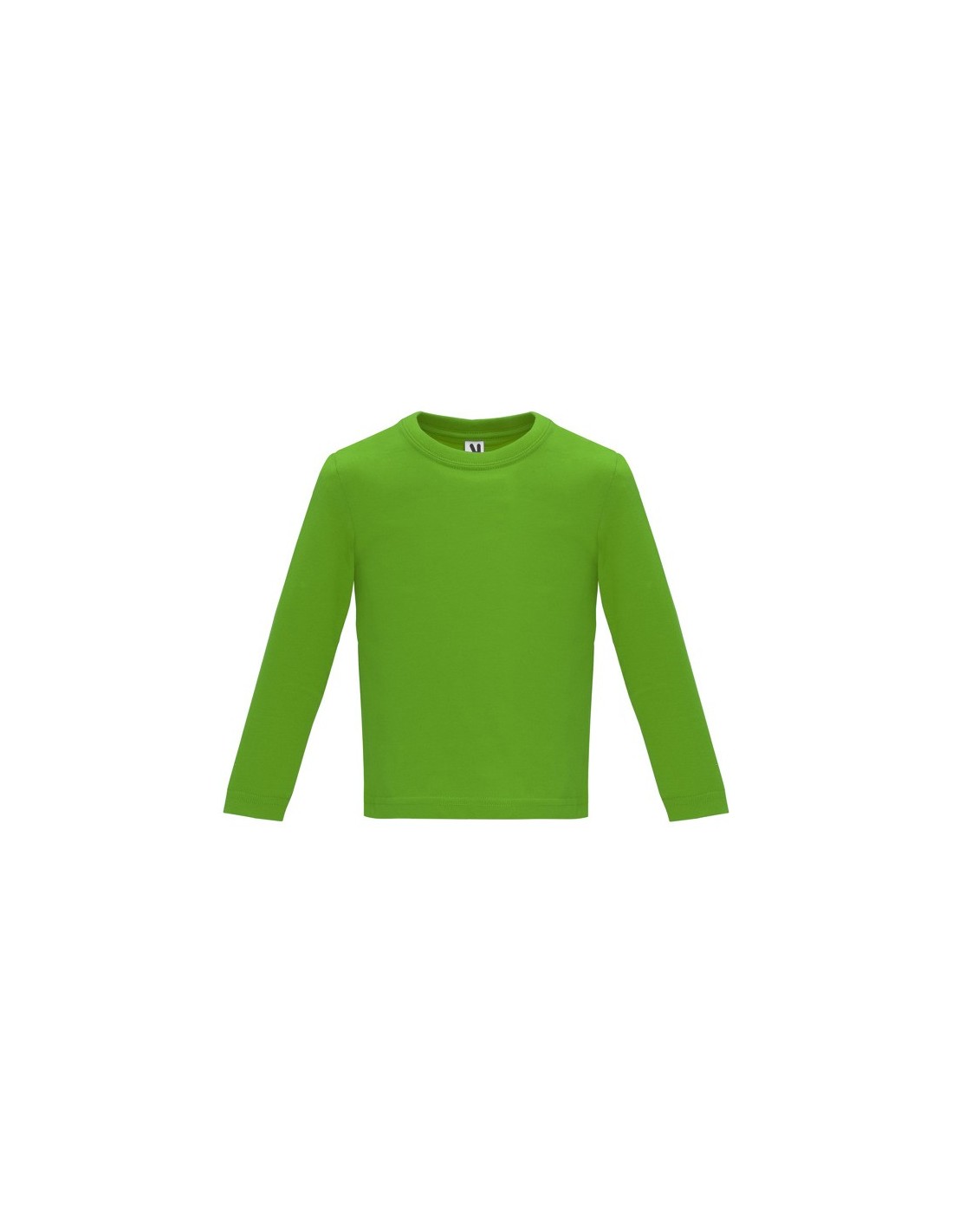 Camiseta de manga larga especial para bebé, confeccionada en tejido en galga fina y acabado compactado. Cuello redondo y apertura en hombro con corchetes desde la talla 6M a 18M. La talla 2A sin apertura en el hombro. Costuras laterales.
