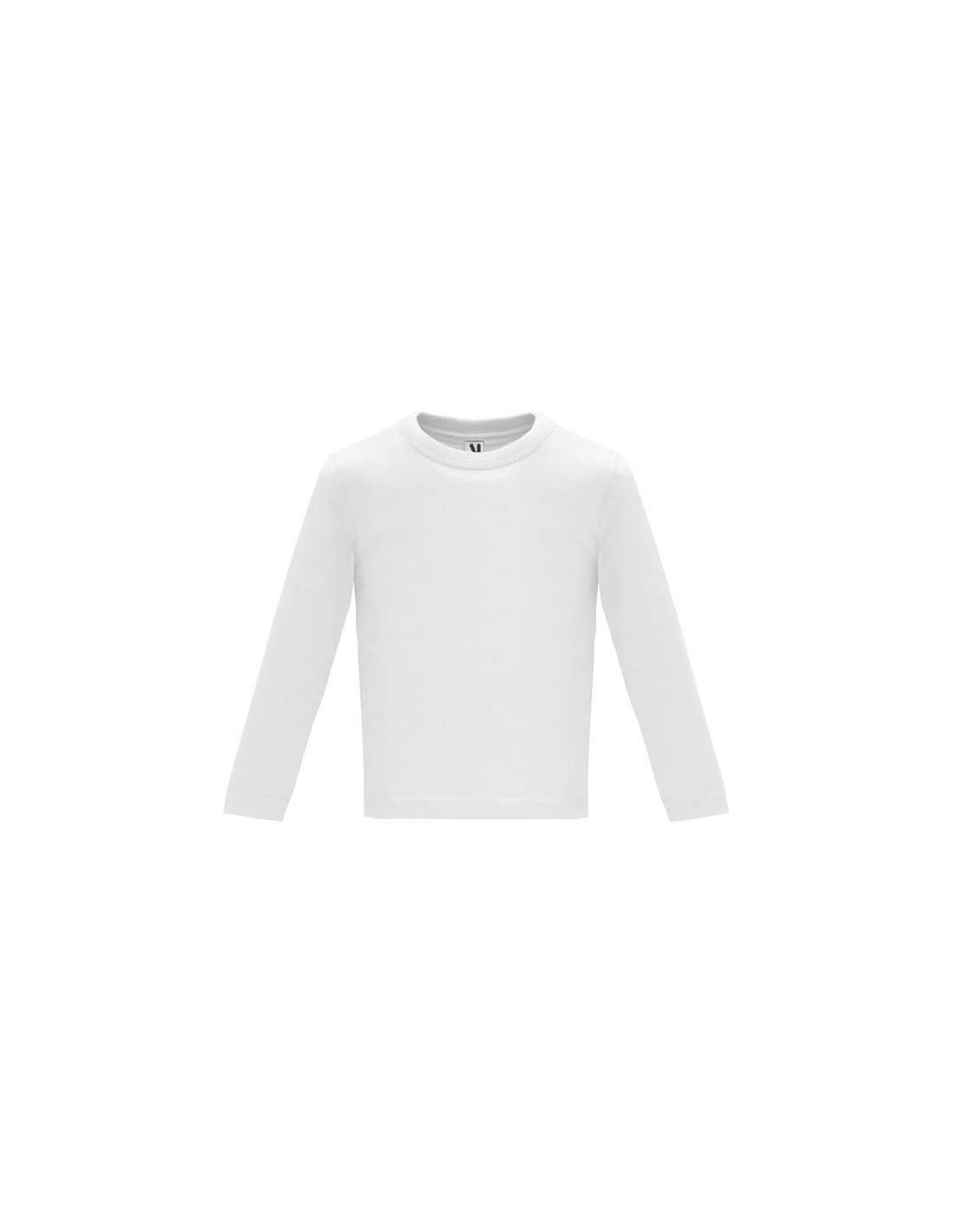 Camiseta de manga larga especial para bebé, confeccionada en tejido en galga fina y acabado compactado. Cuello redondo y apertura en hombro con corchetes desde la talla 6M a 18M. La talla 2A sin apertura en el hombro. Costuras laterales.