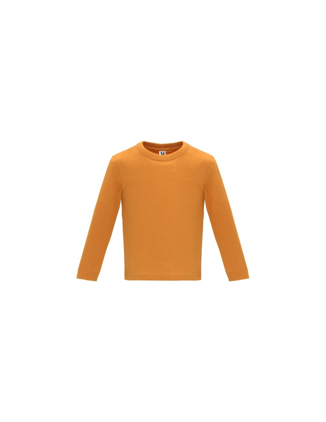Camiseta de manga larga especial para bebé, confeccionada en tejido en galga fina y acabado compactado. Cuello redondo y apertura en hombro con corchetes desde la talla 6M a 18M. La talla 2A sin apertura en el hombro. Costuras laterales.