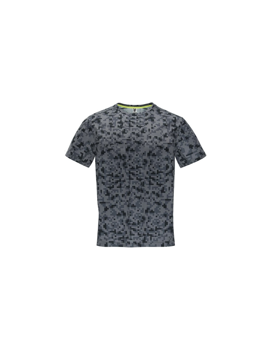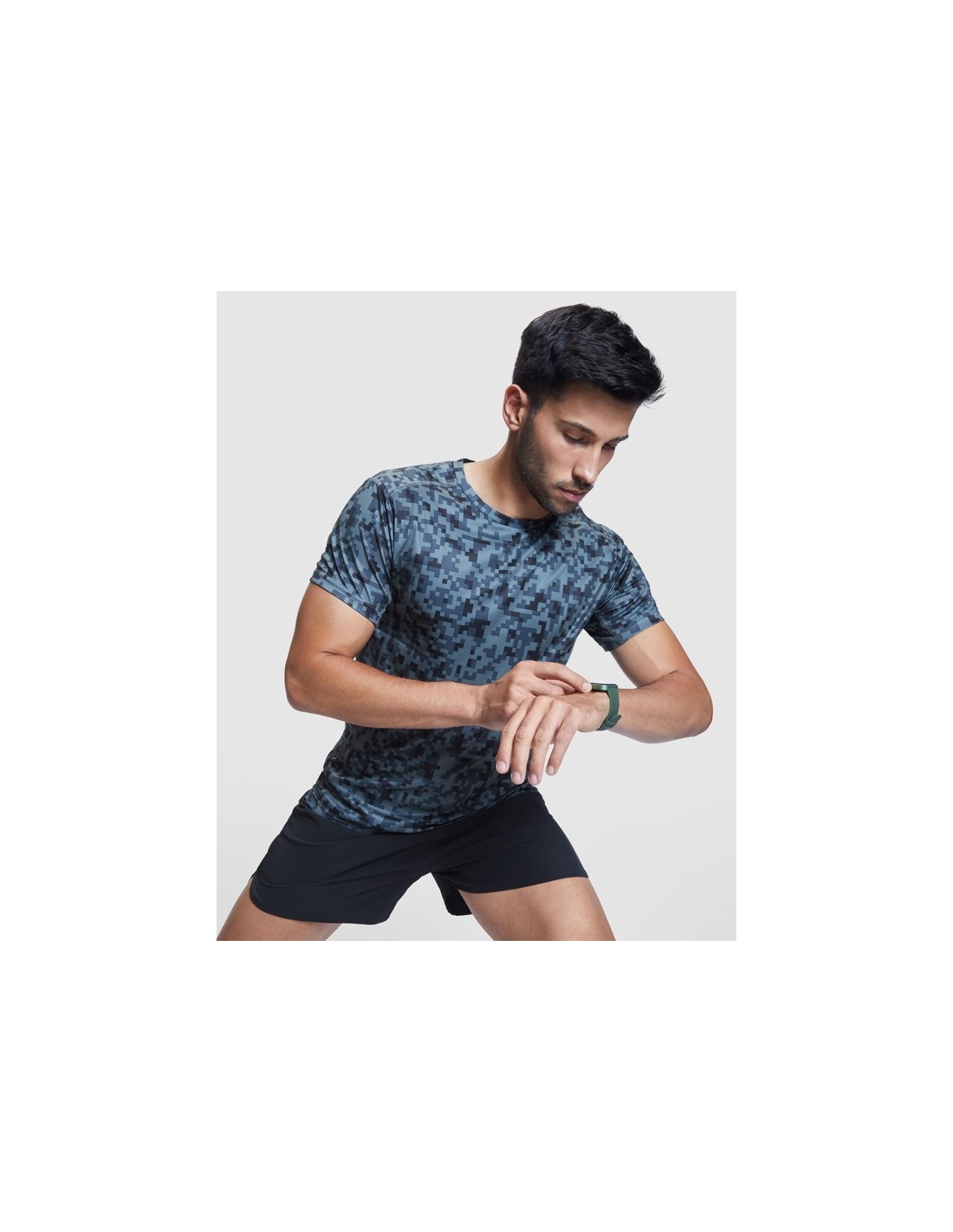 Camiseta técnica de manga corta estampada. Cuello redondo con cubre costuras de refuerzo a contraste en color amarillo flúor. Paneles laterales en interior de manga y en los hombros con remallado a tono. Tejido suave, ligero y transpirable, fácil secado.