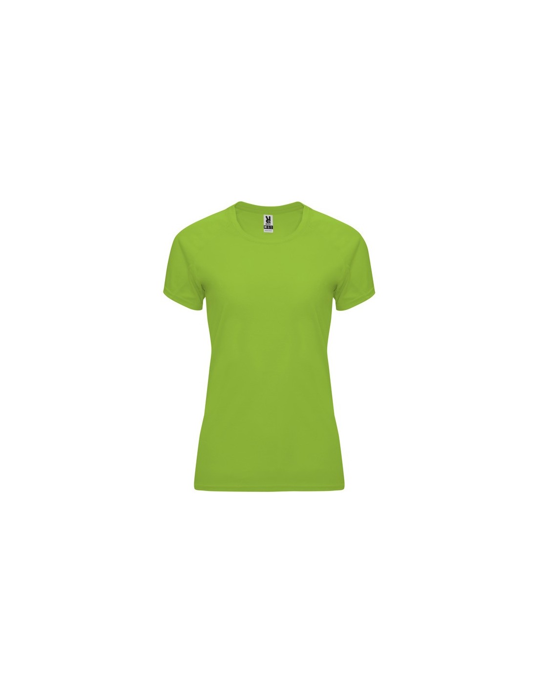 Camiseta técnica entallada de manga corta ranglán para mujer, con cuello redondo y cubrecosturas a tono. Paneles inferiores en mangas. Remallado a tono en sisa y panel de manga. Tejido CONTROL DRY.