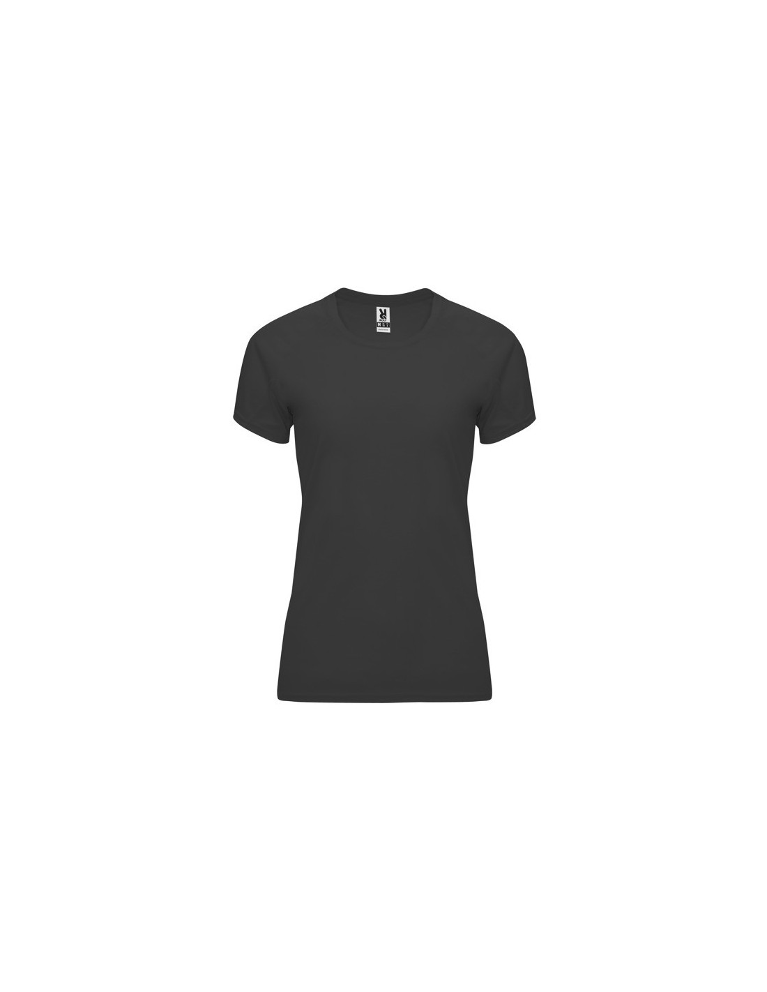 Camiseta técnica entallada de manga corta ranglán para mujer, con cuello redondo y cubrecosturas a tono. Paneles inferiores en mangas. Remallado a tono en sisa y panel de manga. Tejido CONTROL DRY.