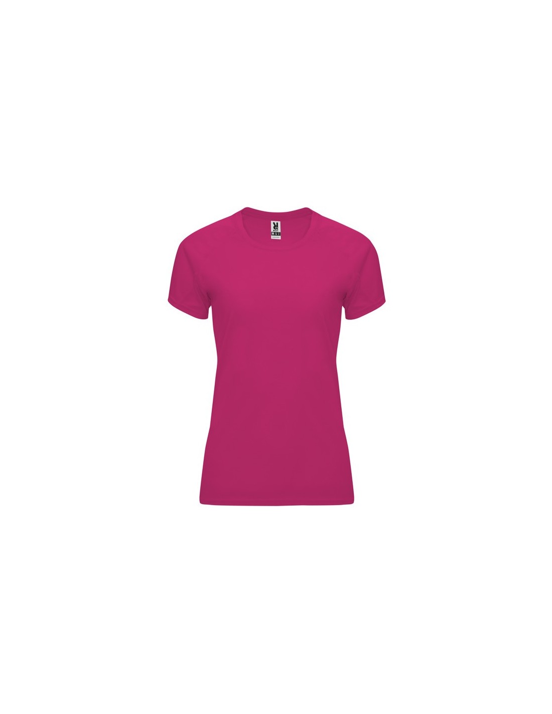 Camiseta técnica entallada de manga corta ranglán para mujer, con cuello redondo y cubrecosturas a tono. Paneles inferiores en mangas. Remallado a tono en sisa y panel de manga. Tejido CONTROL DRY.