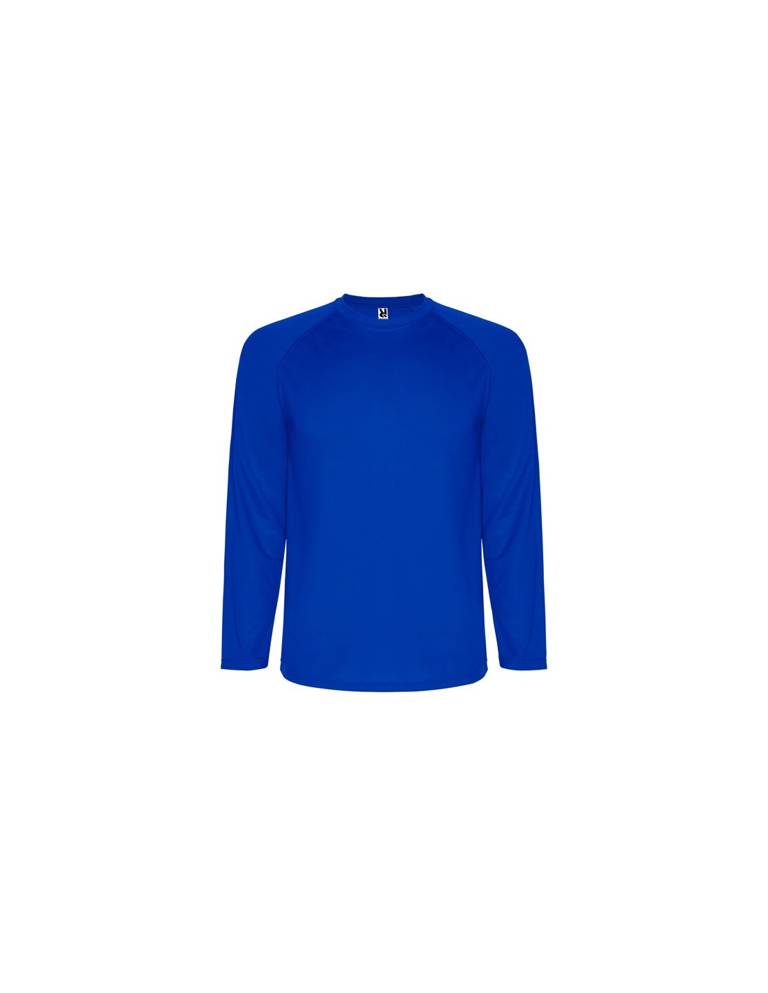 Camiseta técnica de manga larga ranglán, remallada al tono en mangas (sin cortes laterales). Cubrecosturas en cuello. Tejido transpirable de fácil lavado y secado.